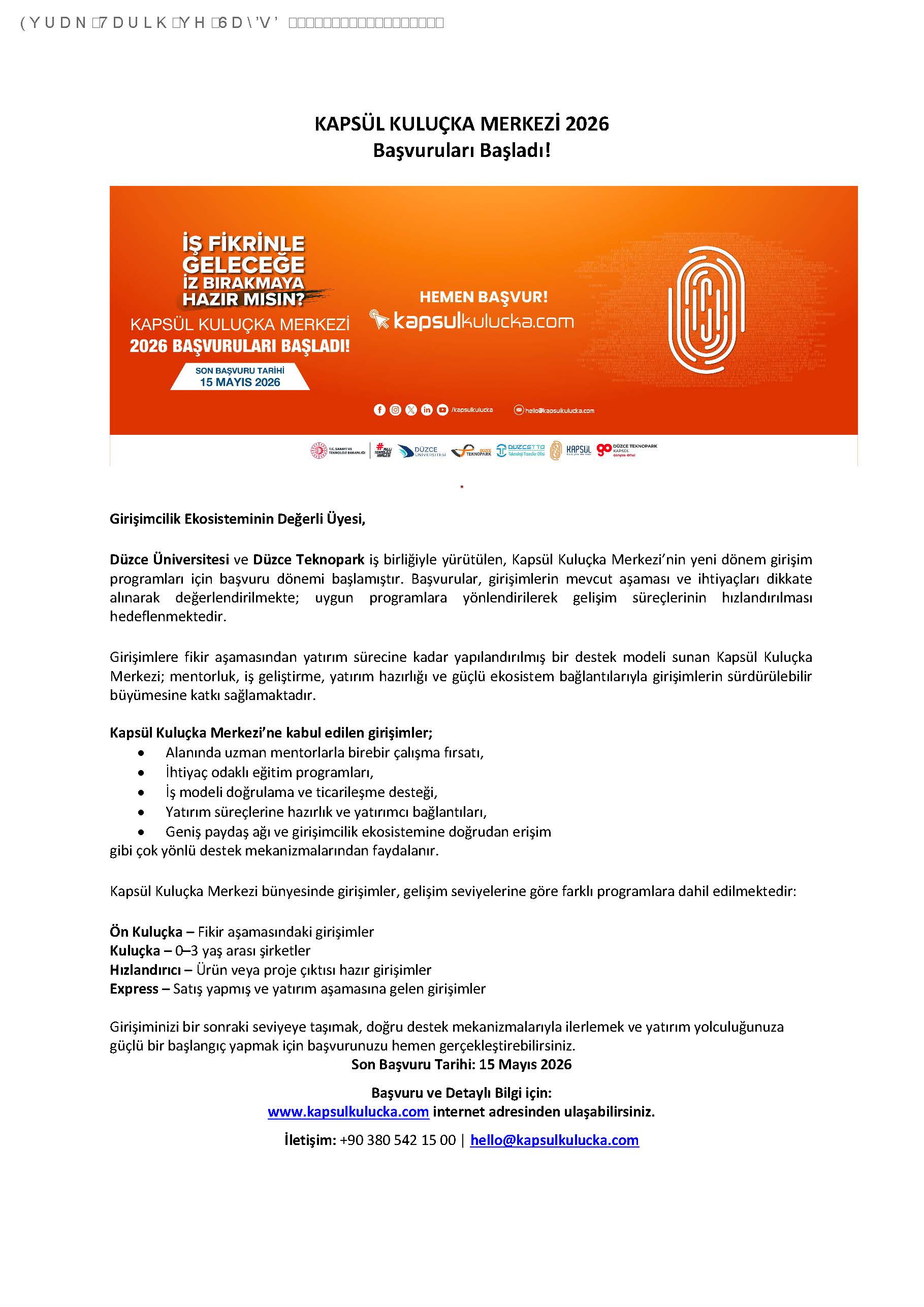 Ana Sayfa / Duyurular / Kapsül Kuluçka Merkezi 2026