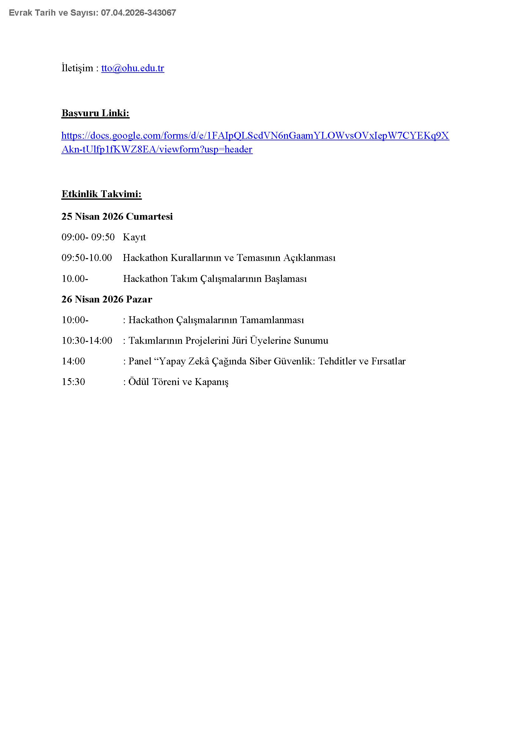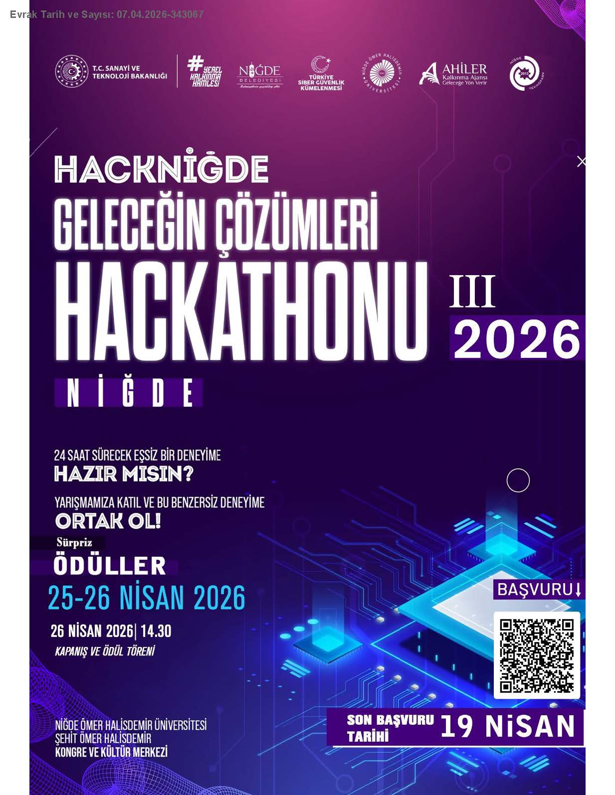 8 Nisan 2026, Çarşamba HackNiğde Geleceğin Çözümleri Hackathonu