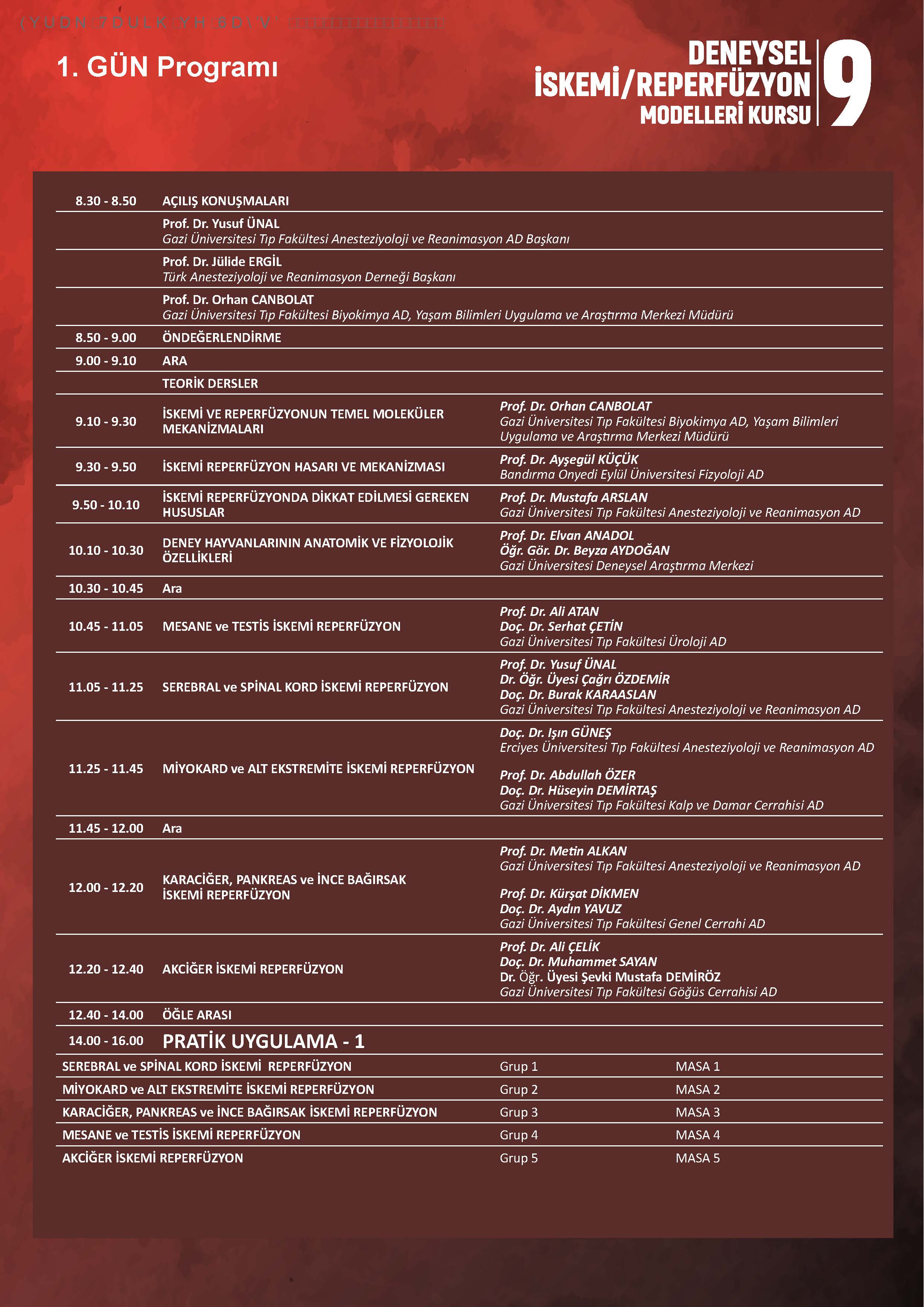 8 Nisan 2026, Çarşamba 9. Deneysel İskemi/Reperfüzyon Modelleri Kursu