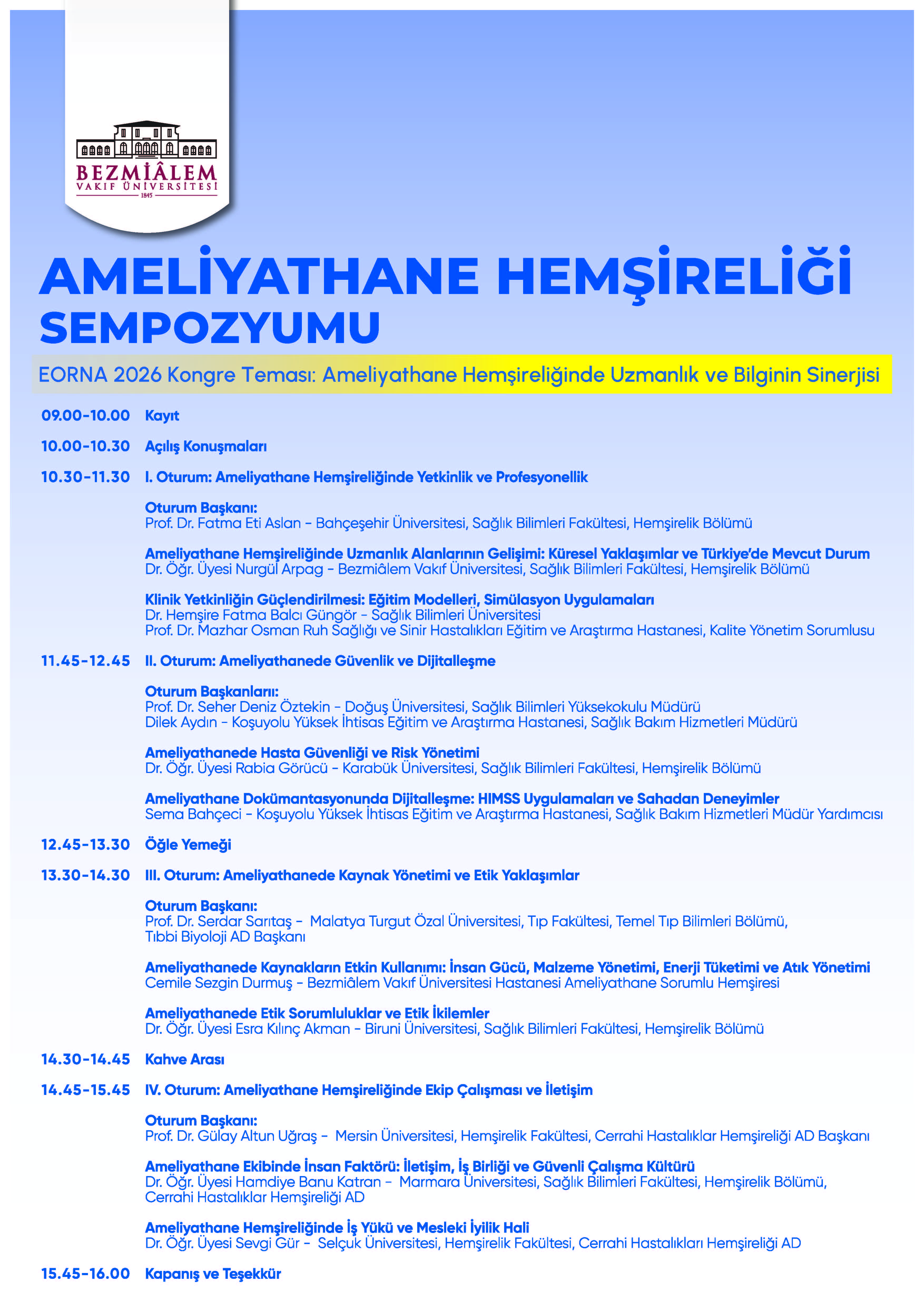 8 Nisan 2026, Çarşamba Ameliyathane Hemşireliği Sempozyumu