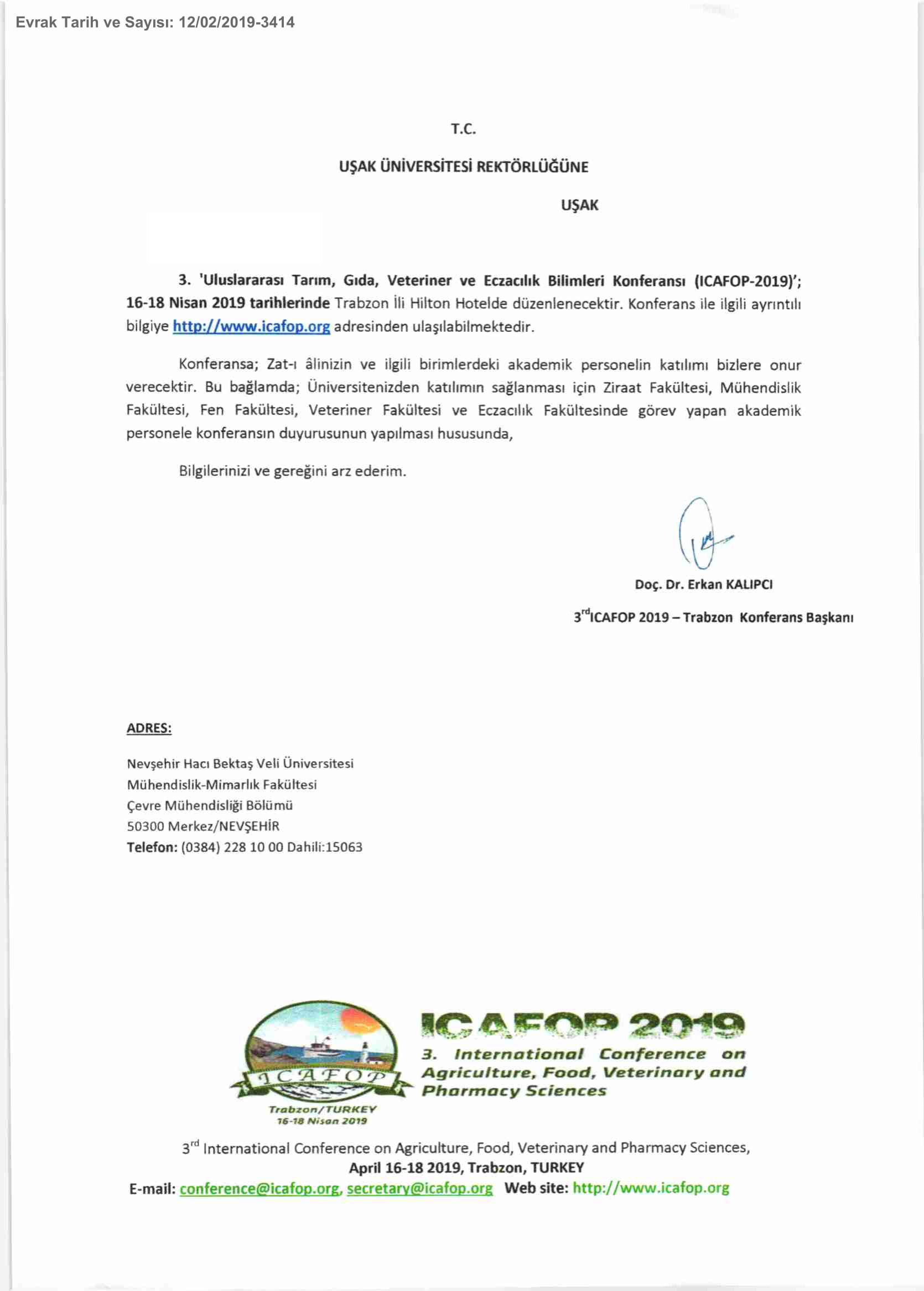 Ana Sayfa / Duyurular / 3. Uluslararası Tarım, Gıda, Veteriner ve Eczacılık Bilimleri Konferansı