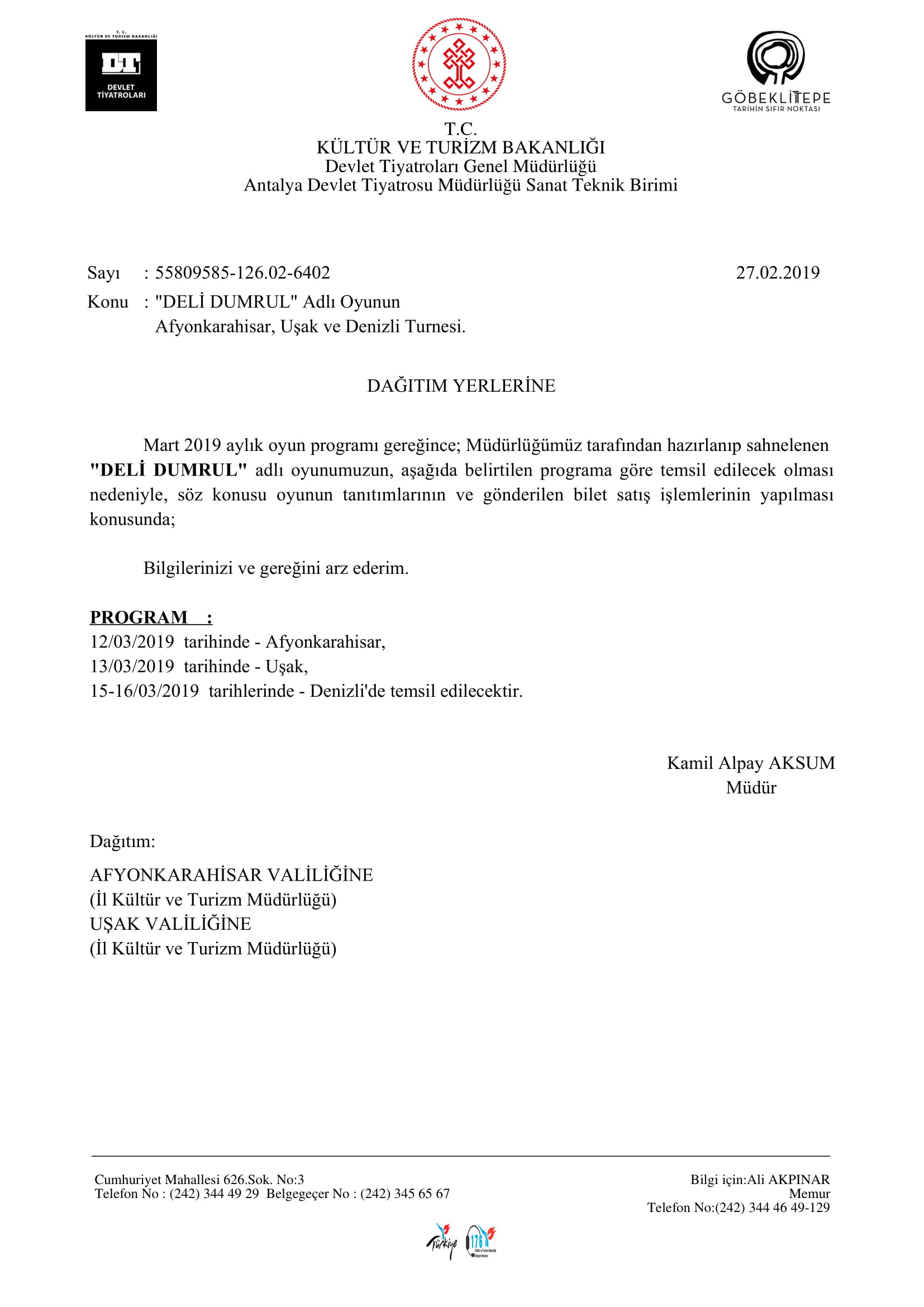 Ana Sayfa / Duyurular / "DELİ DUMRUL" Adlı Oyunun Afyonkarahisar, Uşak ve Denizli Turnesi