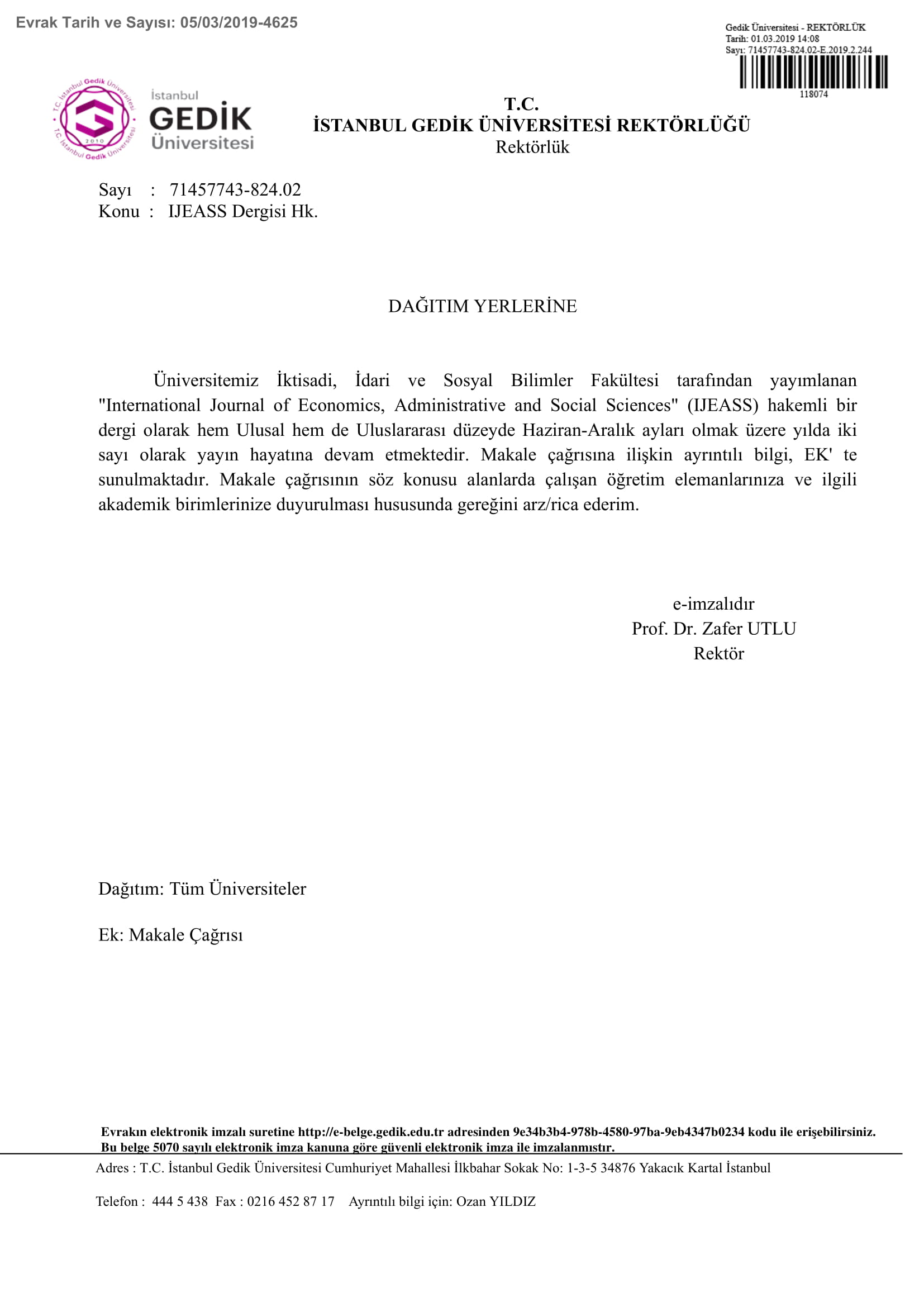 Makale çağrısı için tıklayınız.
