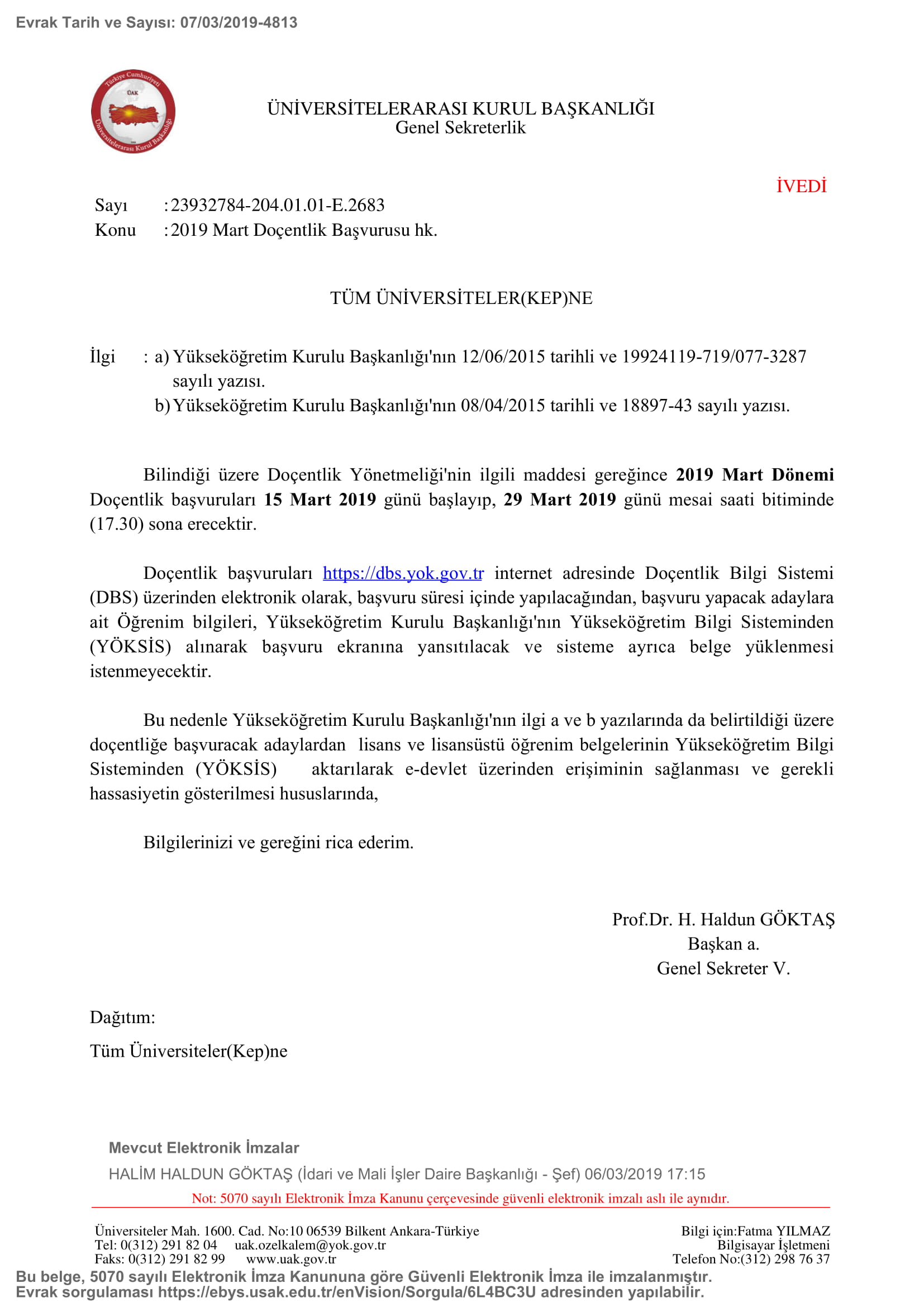 Ana Sayfa / Duyurular / 2019 Mart Doçentlik Basvurusu hk.