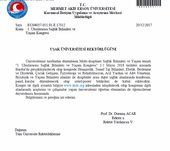 Ana Sayfa / Duyurular / 1. Uluslararası Sağlık Bilimleri ve Yaşam Kongresi