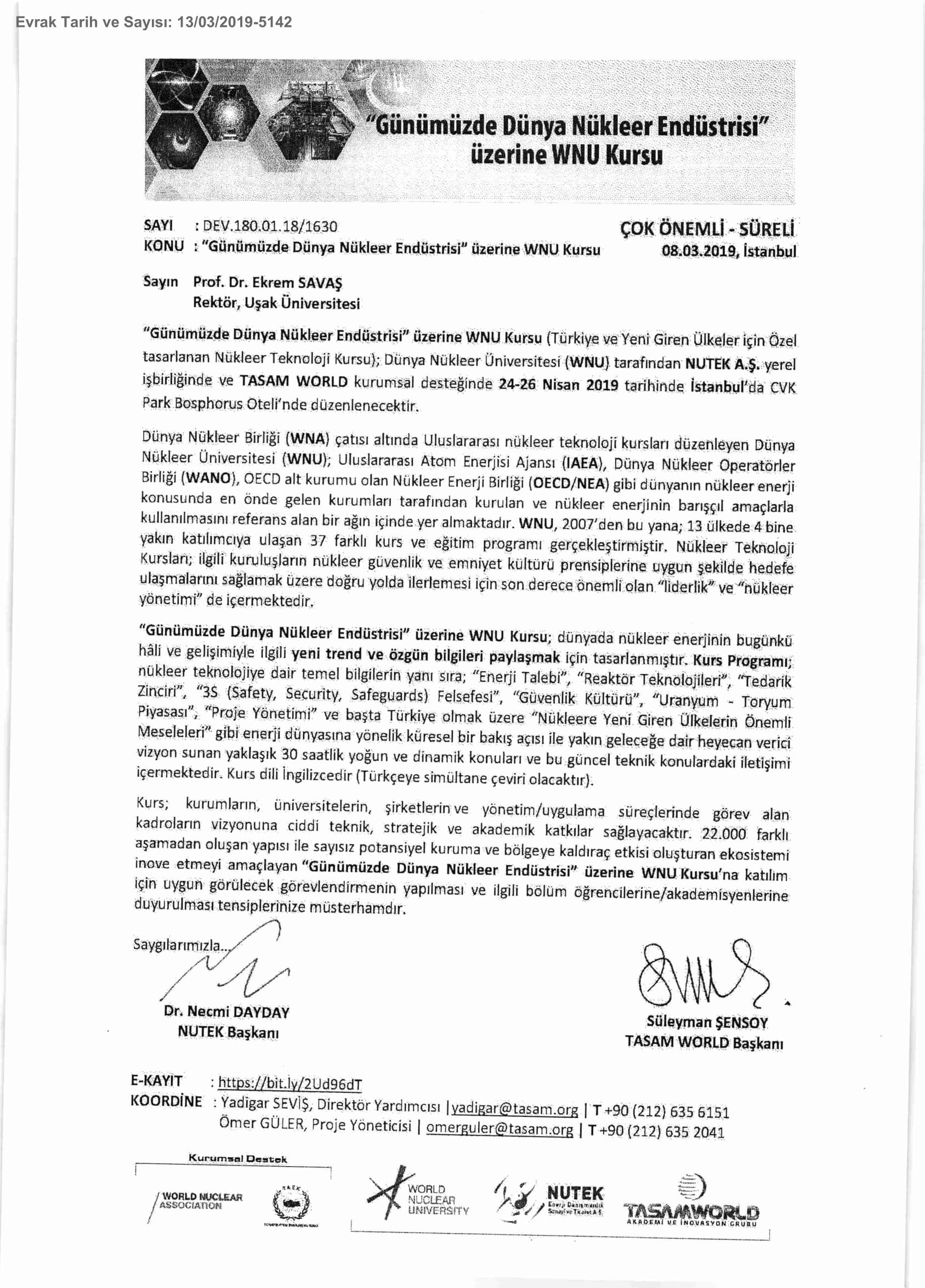 Günümüzde Dünya Nükleer Endüstrisi üzerine WNU Kursu