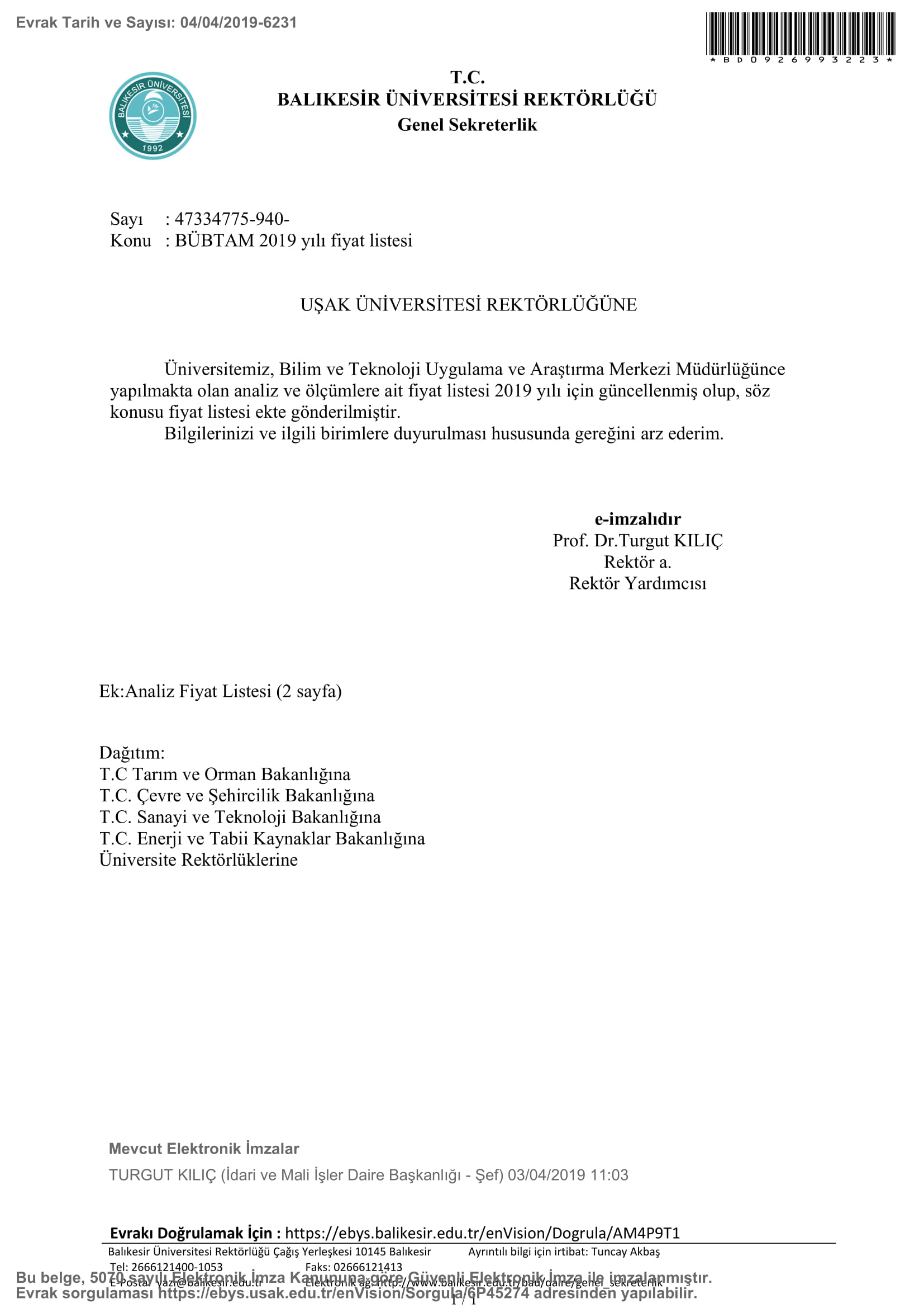 Ana Sayfa / Duyurular / BÜBTAM 2019 yılı fiyat listesi
