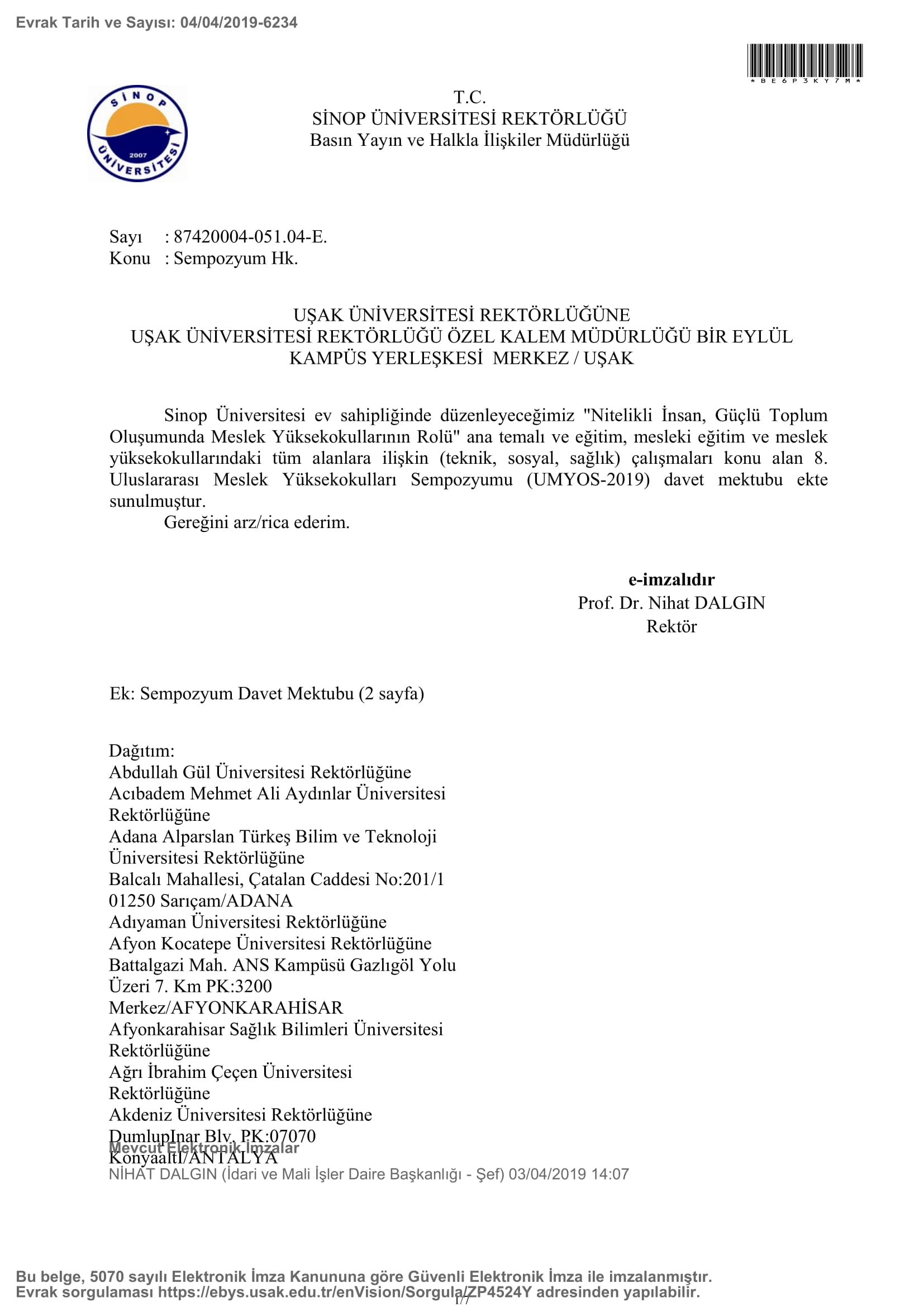 Sempozyum Davet Mektubu (2 sayfa) için tıklayınız.