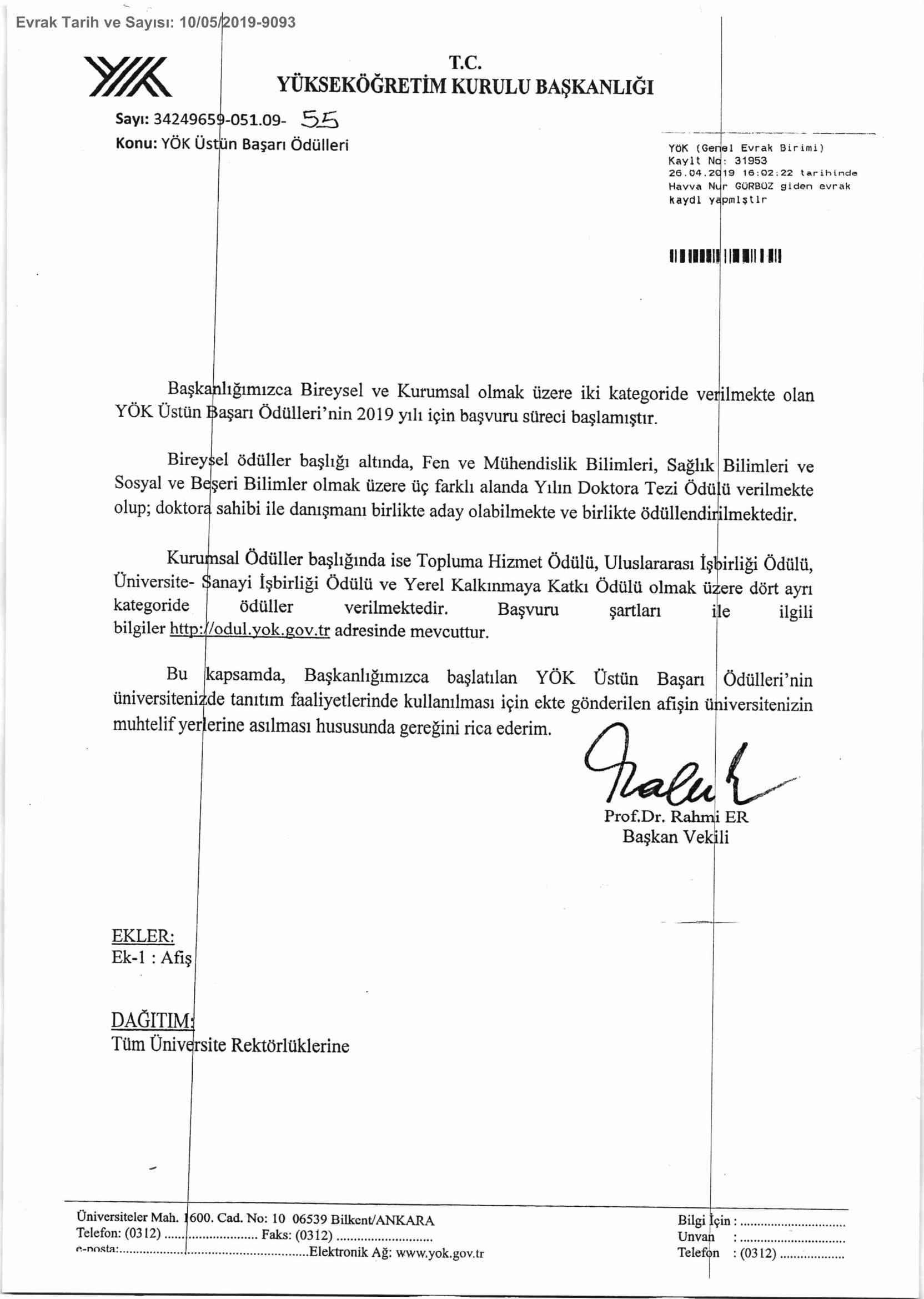 Ana Sayfa / Duyurular / YÖK Üstün Başarı Ödülleri
