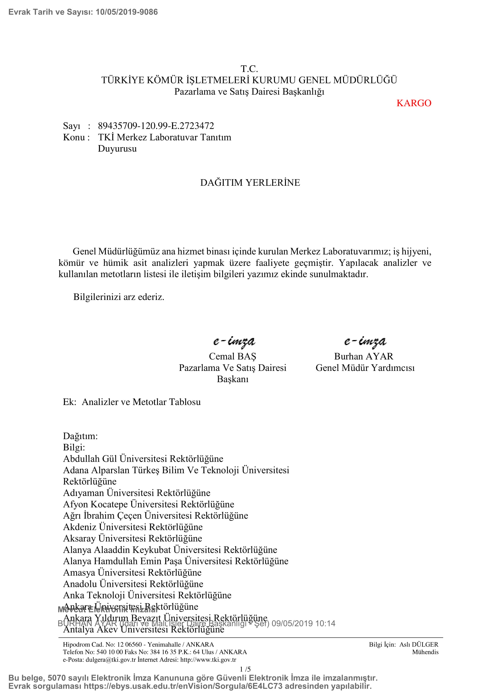 Analizler ve Metotlar Tablosu için tıklayınız.