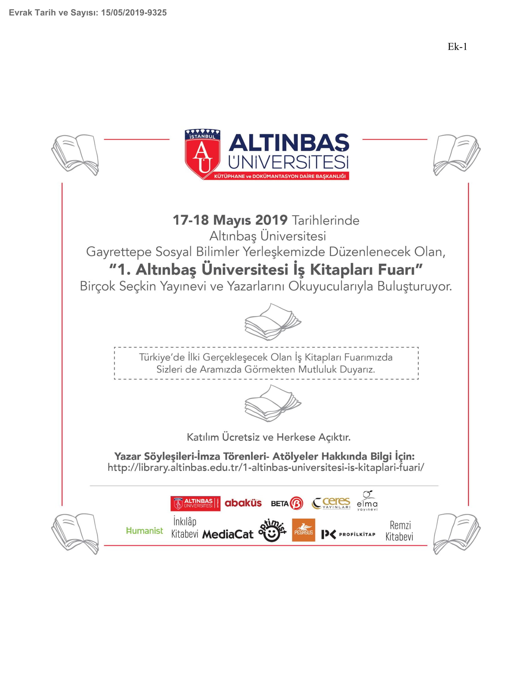 Ana Sayfa / Duyurular / 1. Altınbaş Üniversitesi İş Kitapları Fuarı