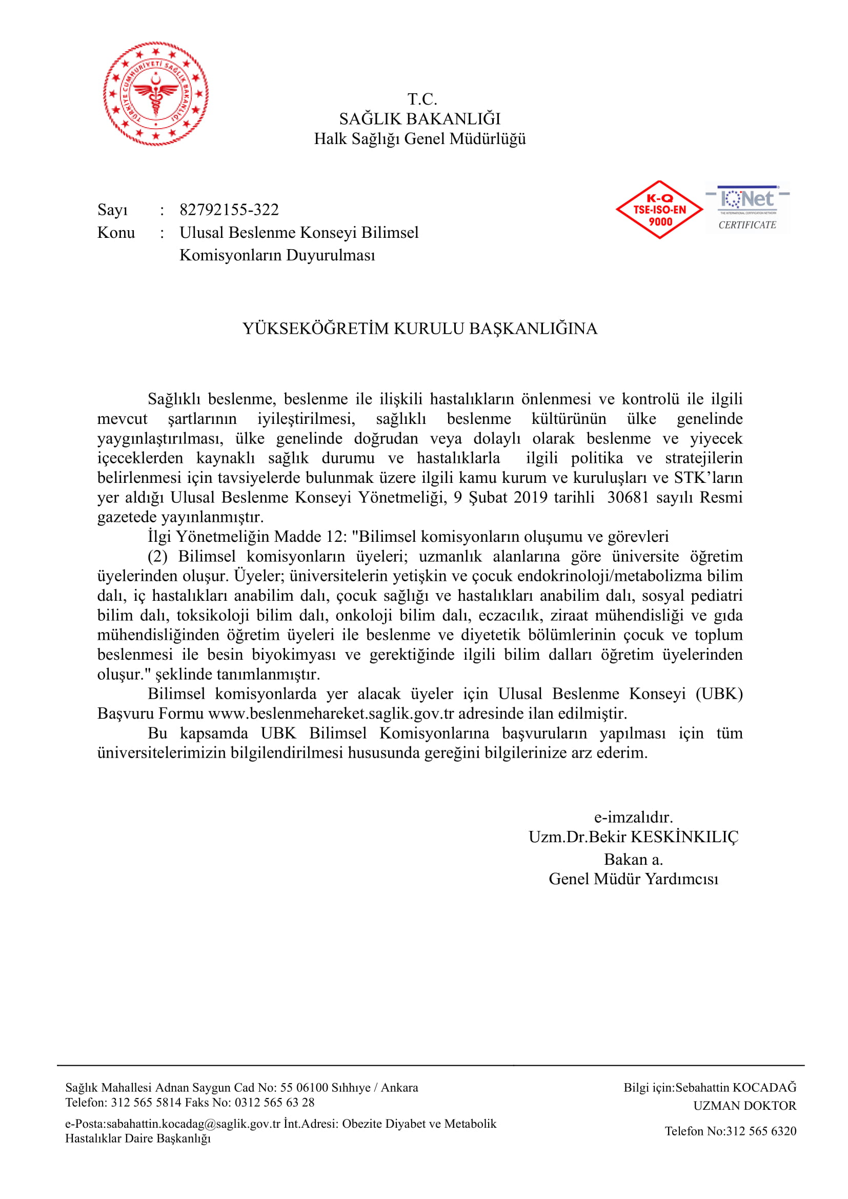 Ana Sayfa / Duyurular / Ulusal Beslenme Konseyi Bilimsel Komisyonların Duyurulması