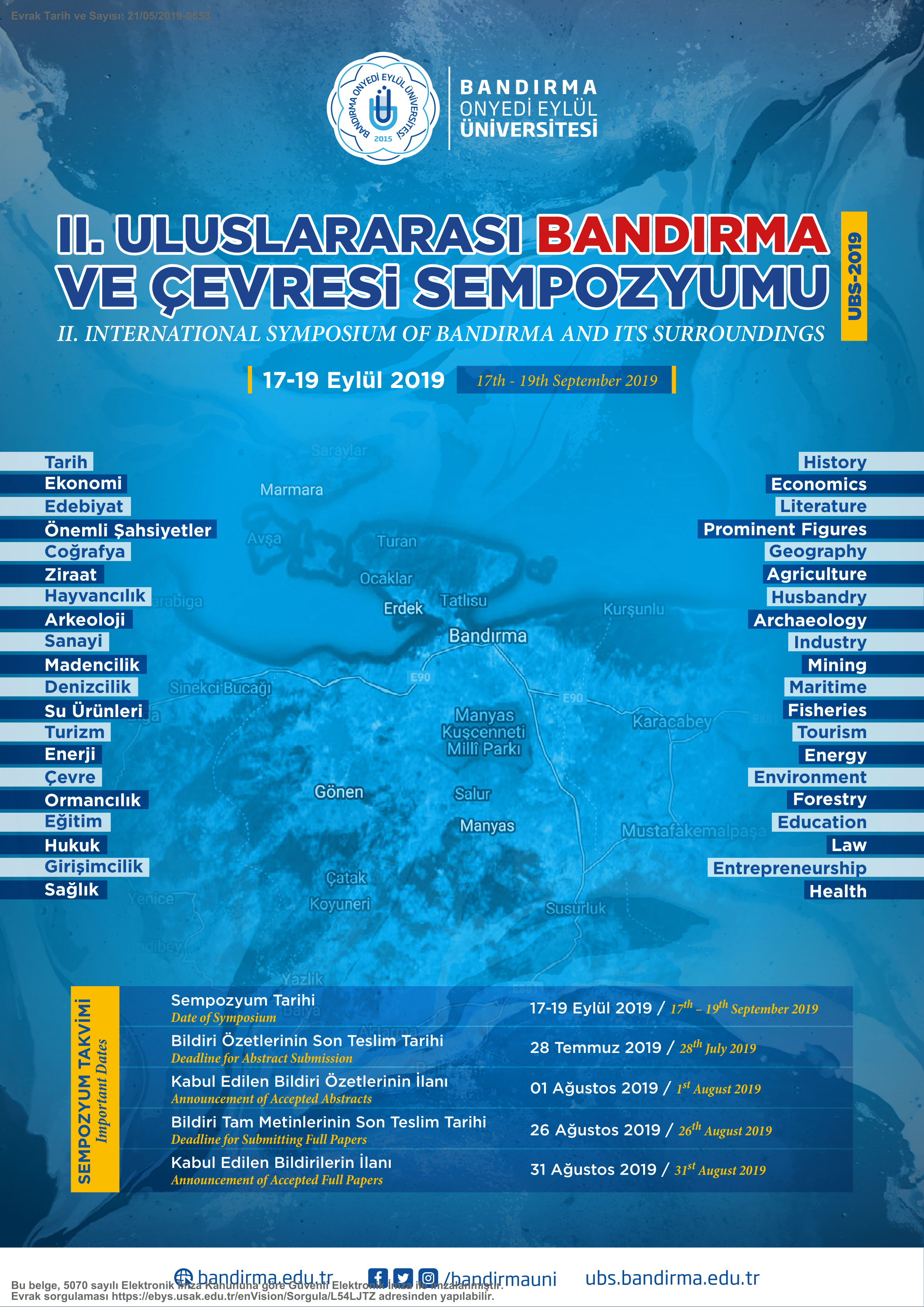 Ana Sayfa / Duyurular / 2. Uluslararası Bandırma ve Çevresi Sempozyumu (2nd International Symposium of Bandirma and its Surroundings)