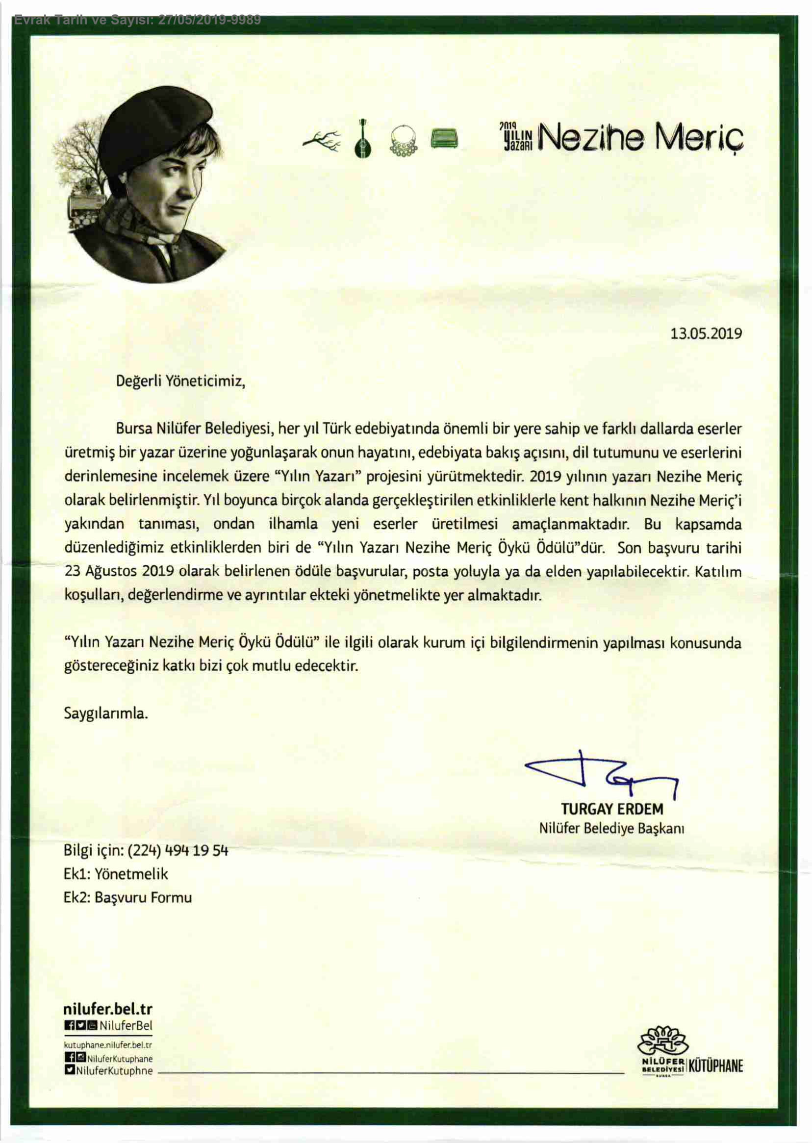 Ana Sayfa / Duyurular / Yılın Yazarı Nezihe Meriç Öykü Ödülü