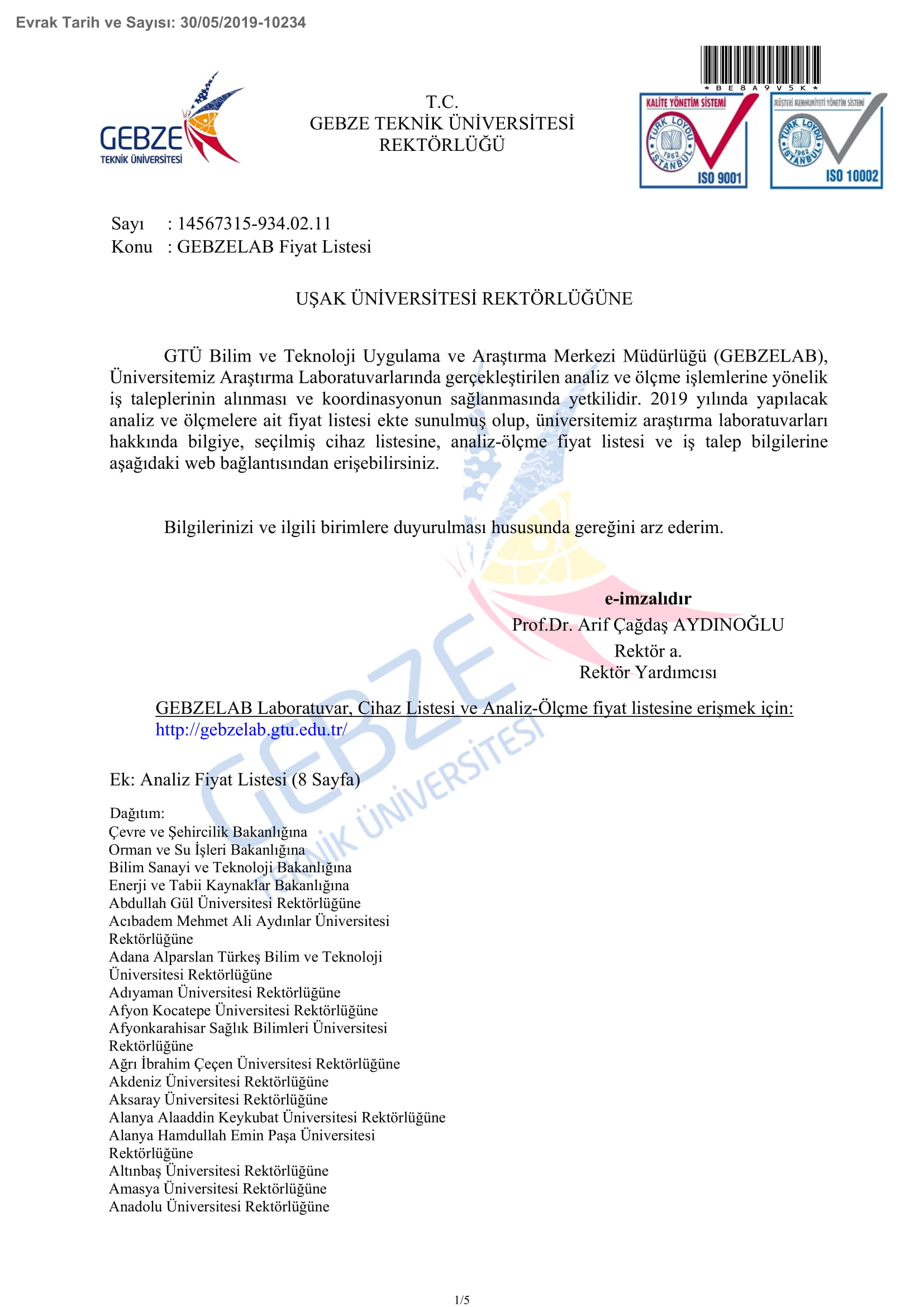 Ana Sayfa / Duyurular / GEBZELAB Fiyat Listesi