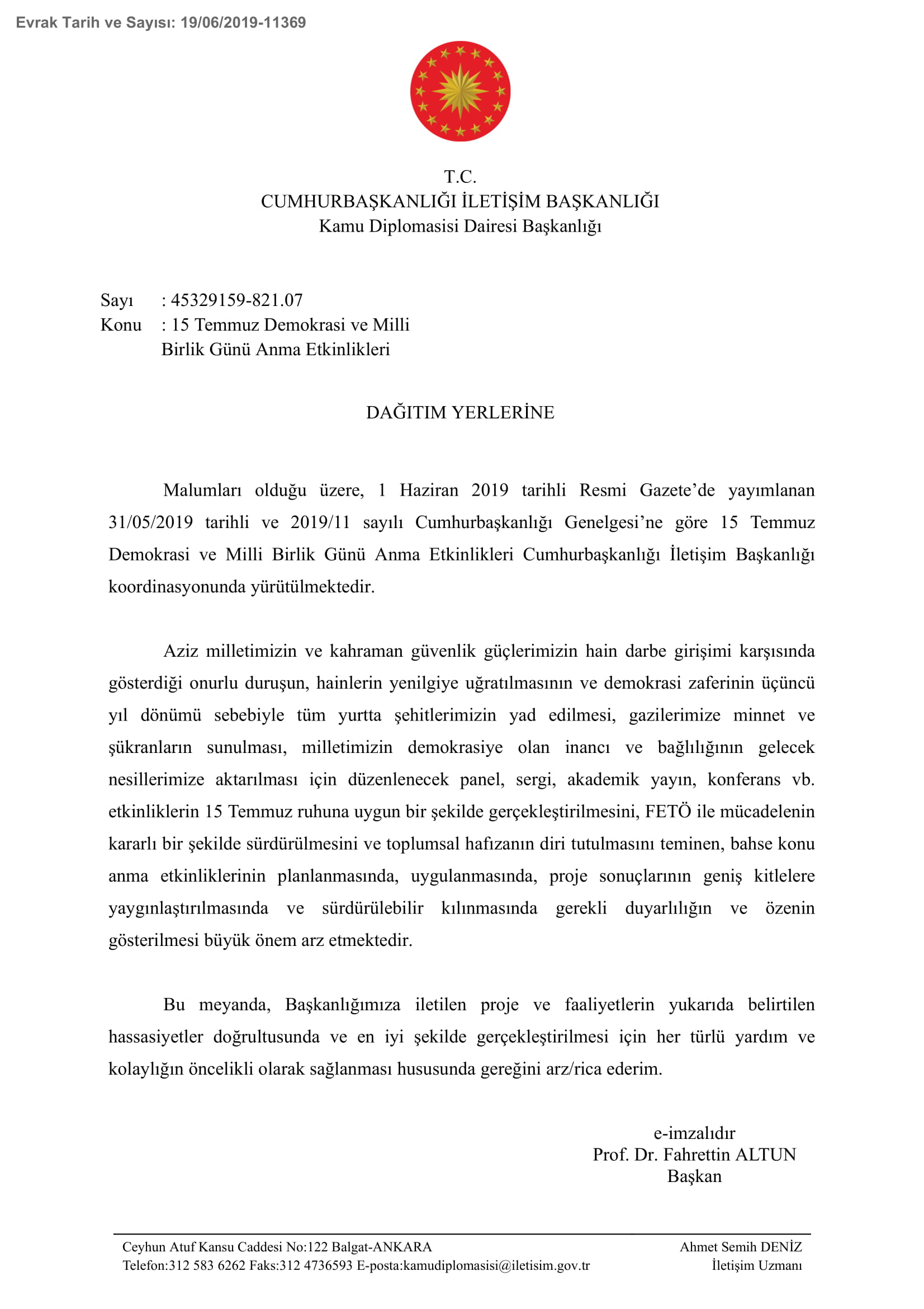 Ana Sayfa / Duyurular / 15 Temmuz Demokrasi ve Milli Birlik Günü Anma Etkinlikleri