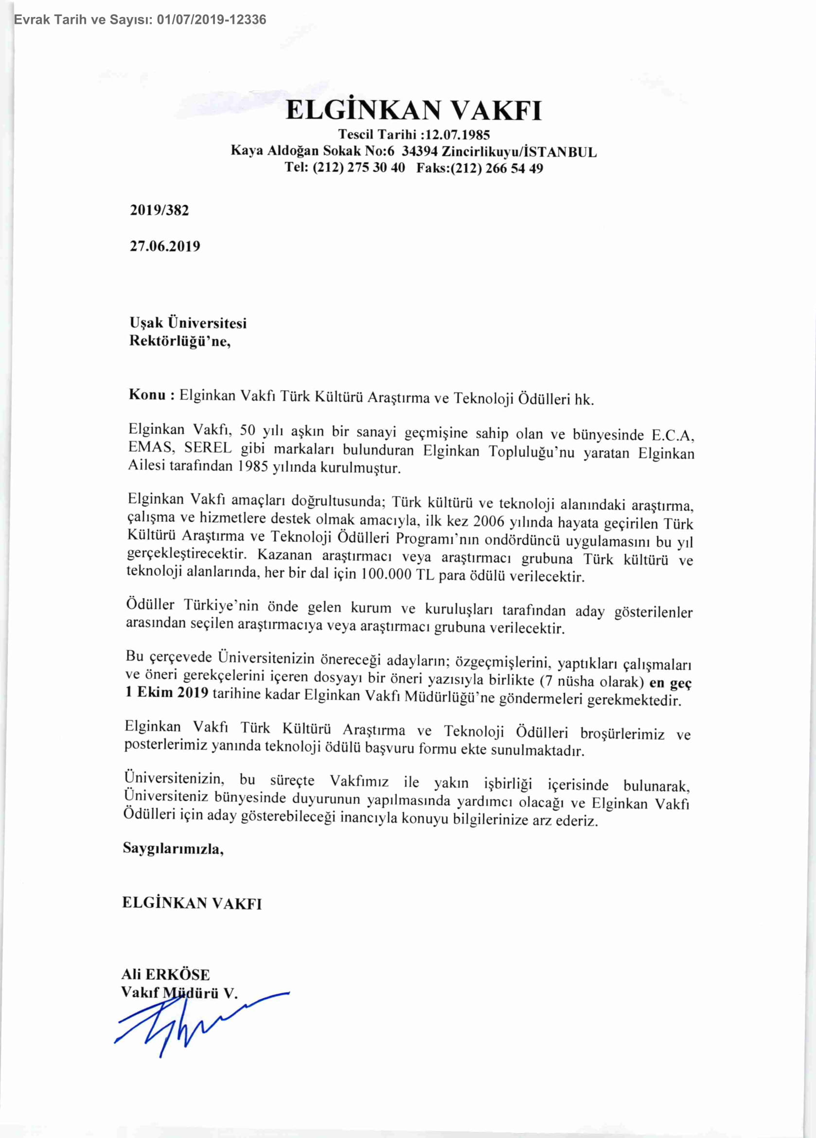 Ana Sayfa / Duyurular / Elginkan Vakfı Türk Kültürü Araştırma ve Teknoloji Ödülleri