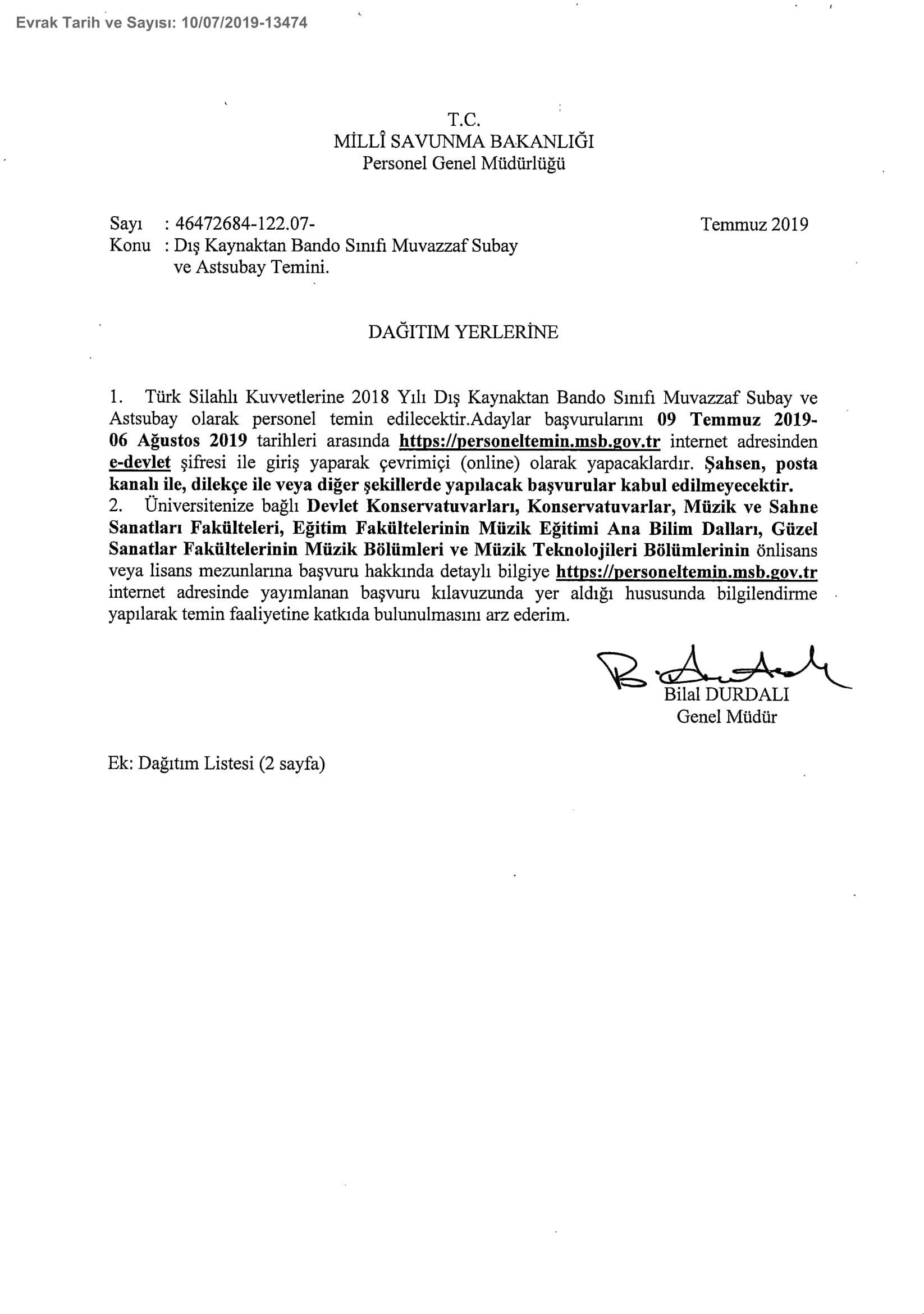Ana Sayfa / Duyurular / Dış Kaynaktan Bando Sınıfı Muvazzaf Subay ve Astsubay Temini