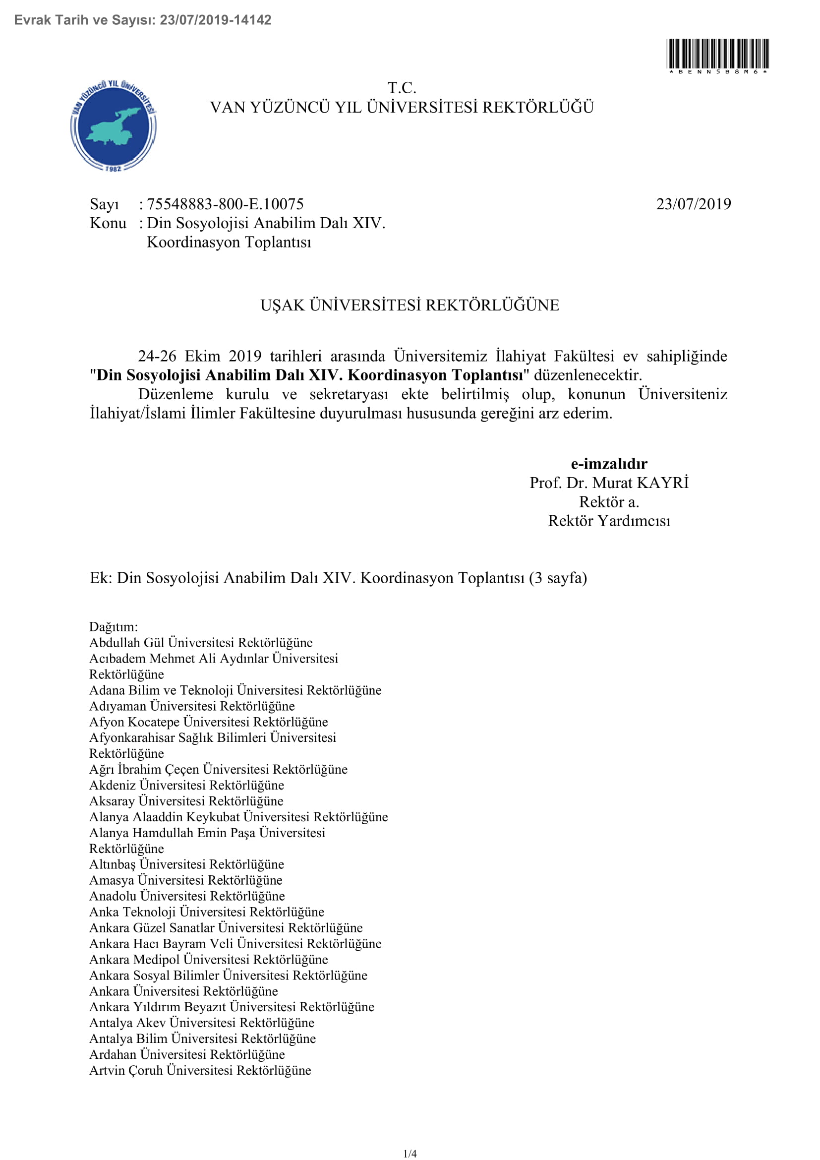 Din Sosyolojisi Anabilim Dalı XIV. Koordinasyon Toplantısı