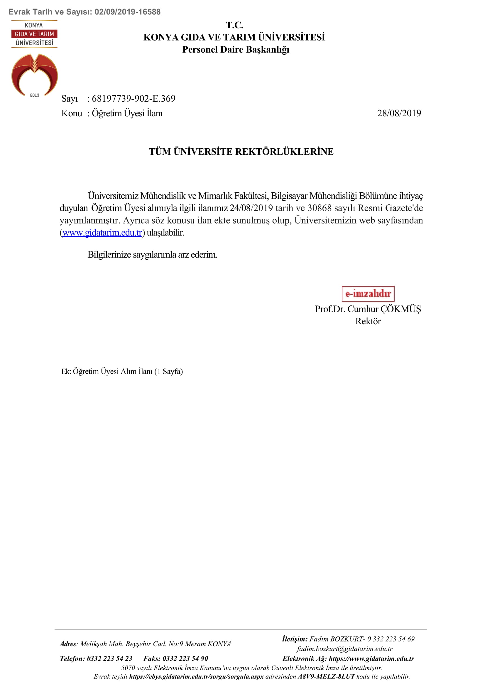 Ana Sayfa / Duyurular / Öğretim Üyesi İlanı
