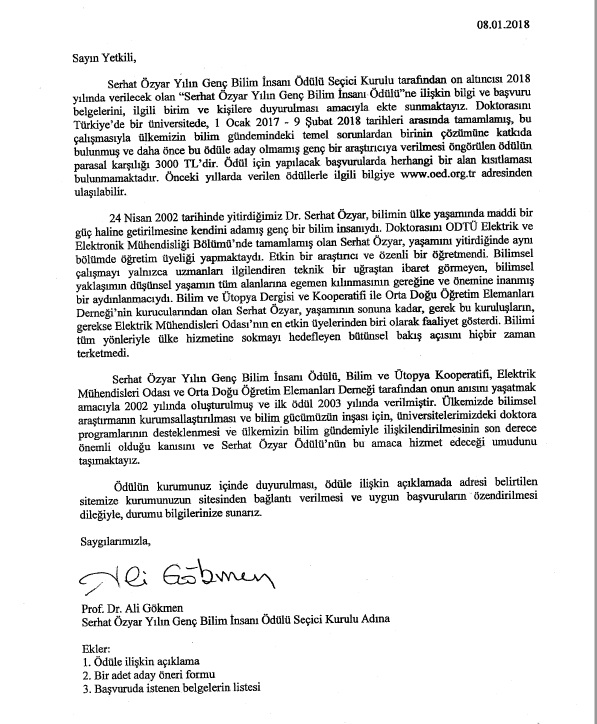 Ana Sayfa / Duyurular / Serhat Özyar Yılın Genç Bilim İnsanı Ödülü