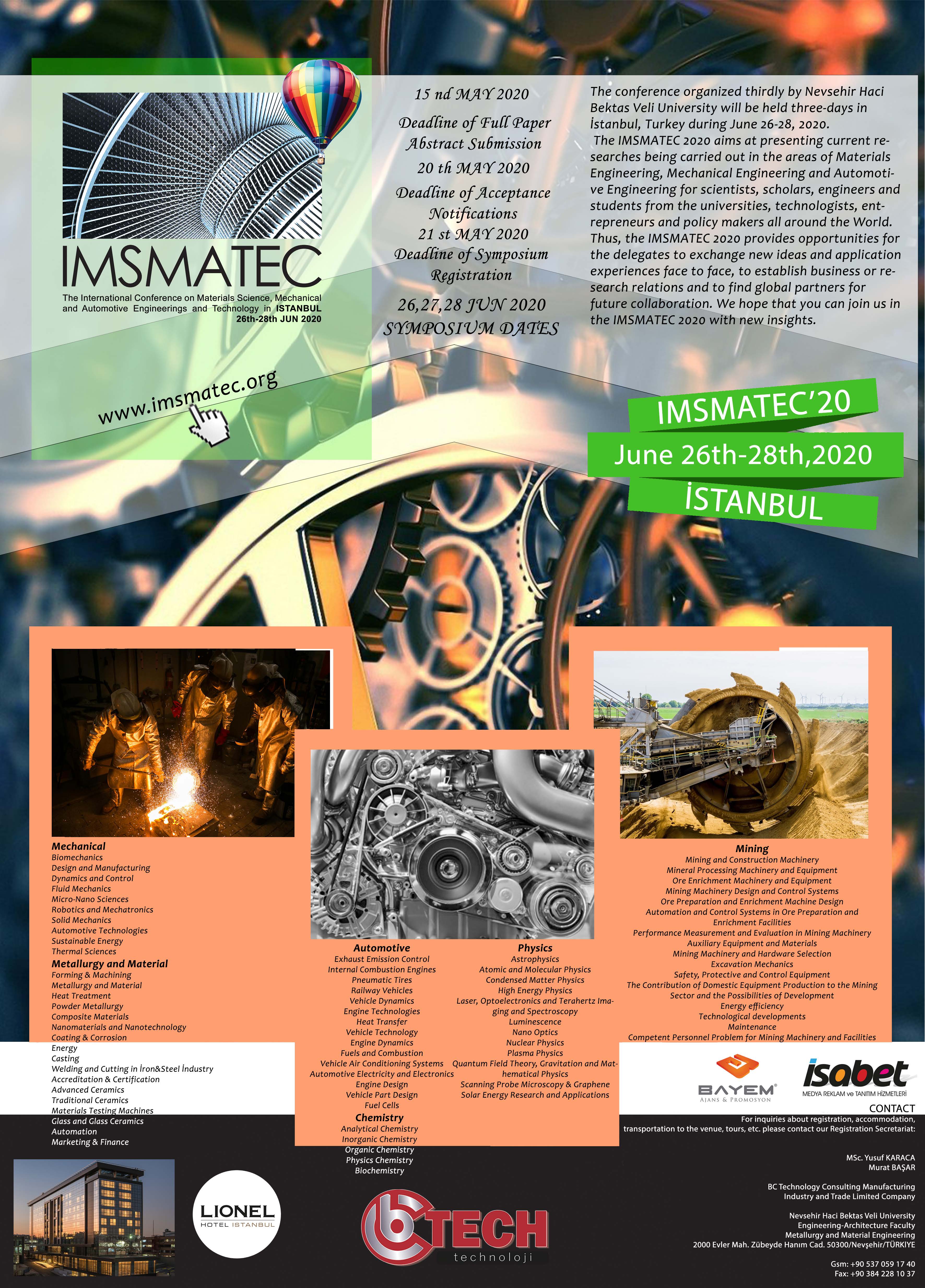 Ana Sayfa / Duyurular / 3. International Conference on Materials Science, Mechanical and Automotive Engineerings and Technology in İstanbul/TURKEY (IMSMATEC'20 İSTANBUL)