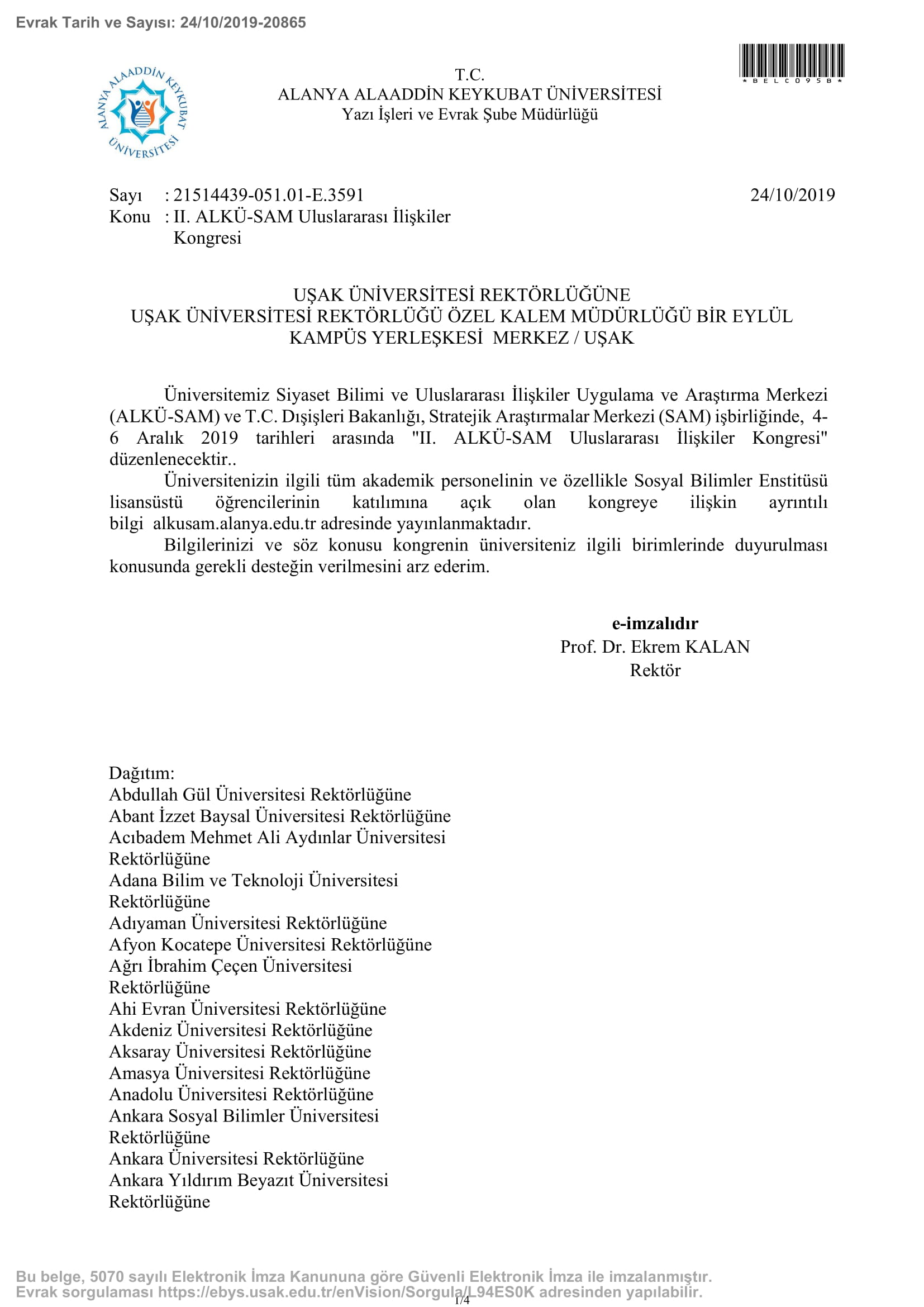 Ana Sayfa / Duyurular / II. ALKÜ-SAM Uluslararası İlişkiler Kongresi