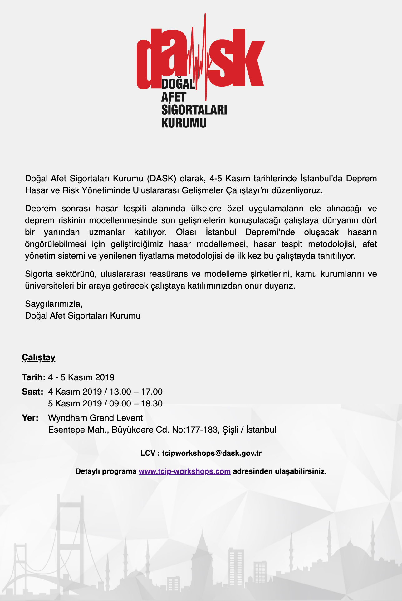 Ana Sayfa / Duyurular / DASK Deprem Hasar ve Disk Yönetiminde Uluslararası Gelişmeler Çalıştayı