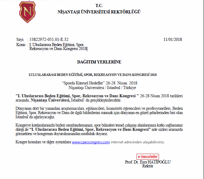 Ana Sayfa / Duyurular / I. Uluslararası Beden Eğitimi, Spor, Rekreasyon ve Dans Kongresi 2018