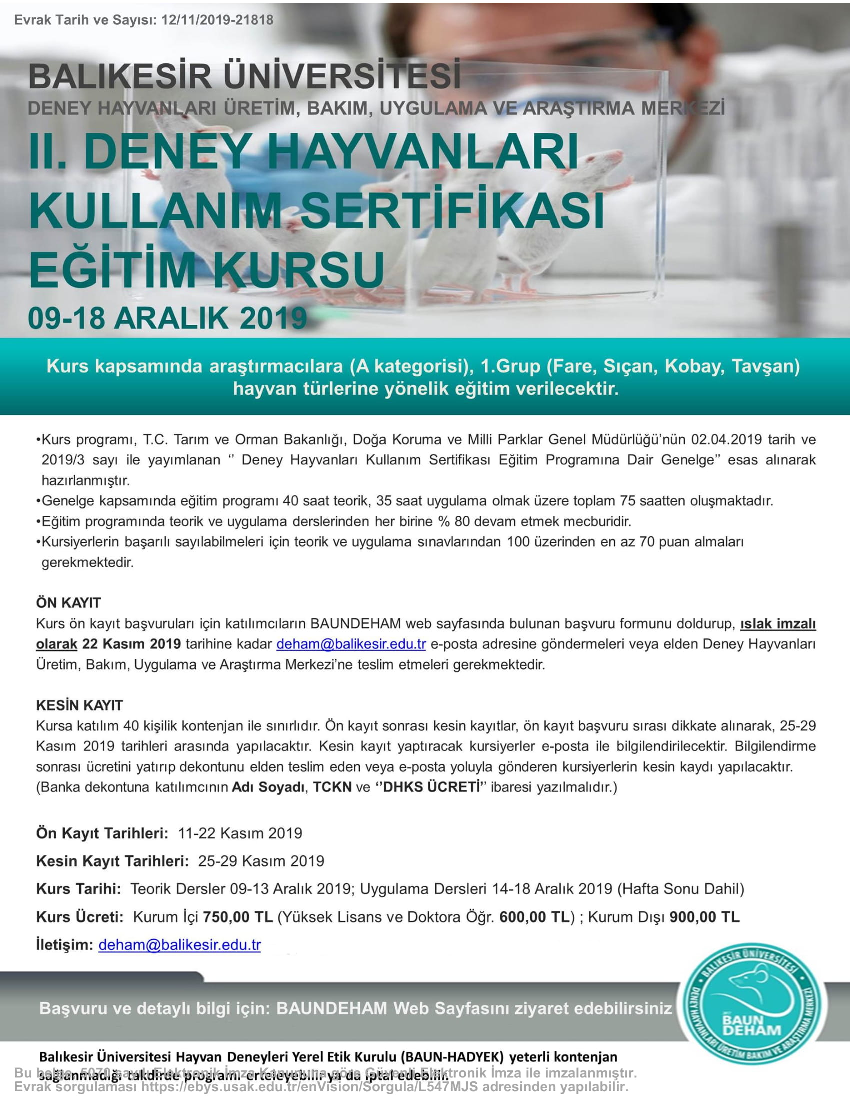 Ana Sayfa / Duyurular / 2. Deney Hayvanı Kullanım Sertifikası Kursu