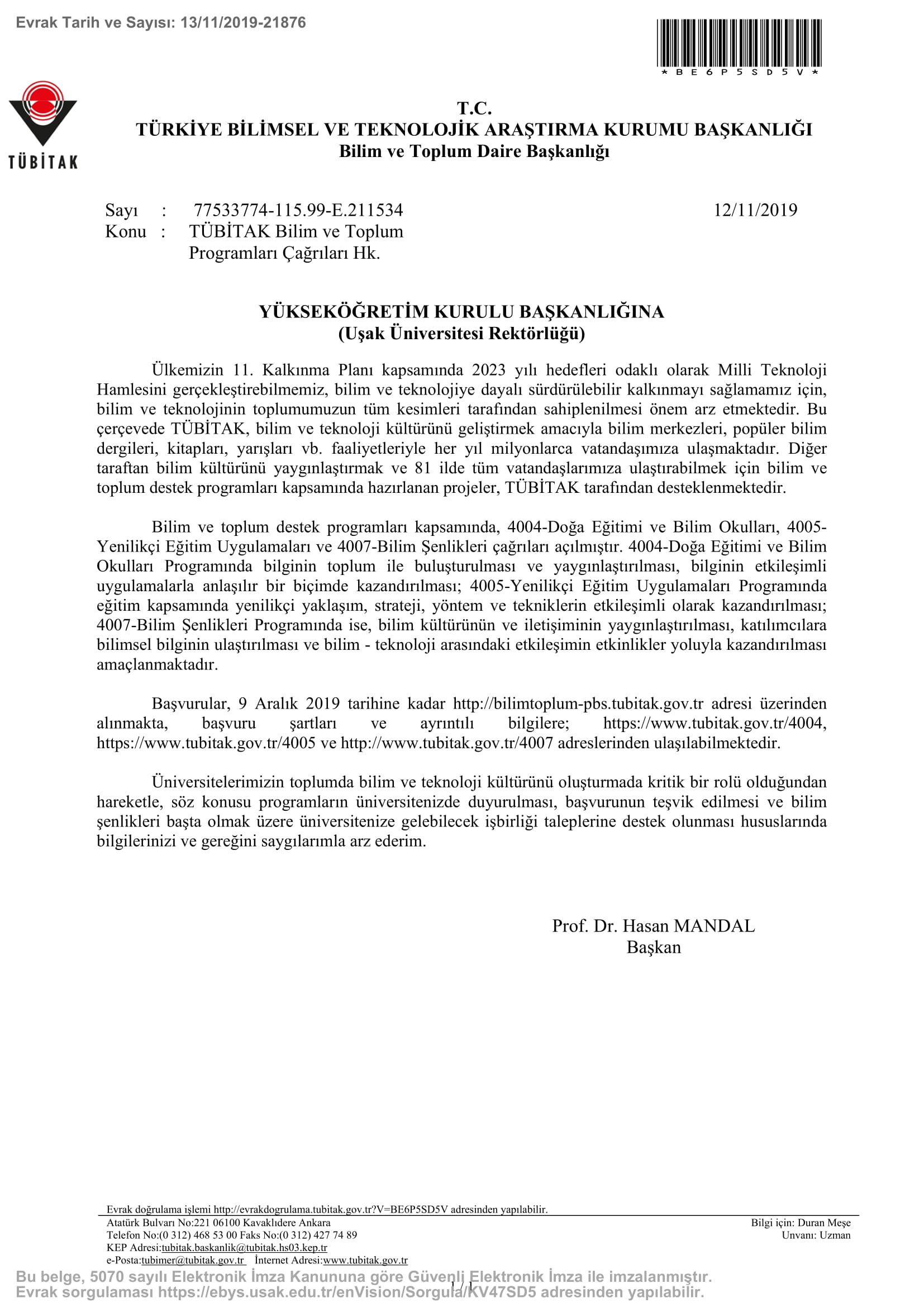 Ana Sayfa / Duyurular / TÜBİTAK Bilim ve Toplum Programları Çağrıları Hk.