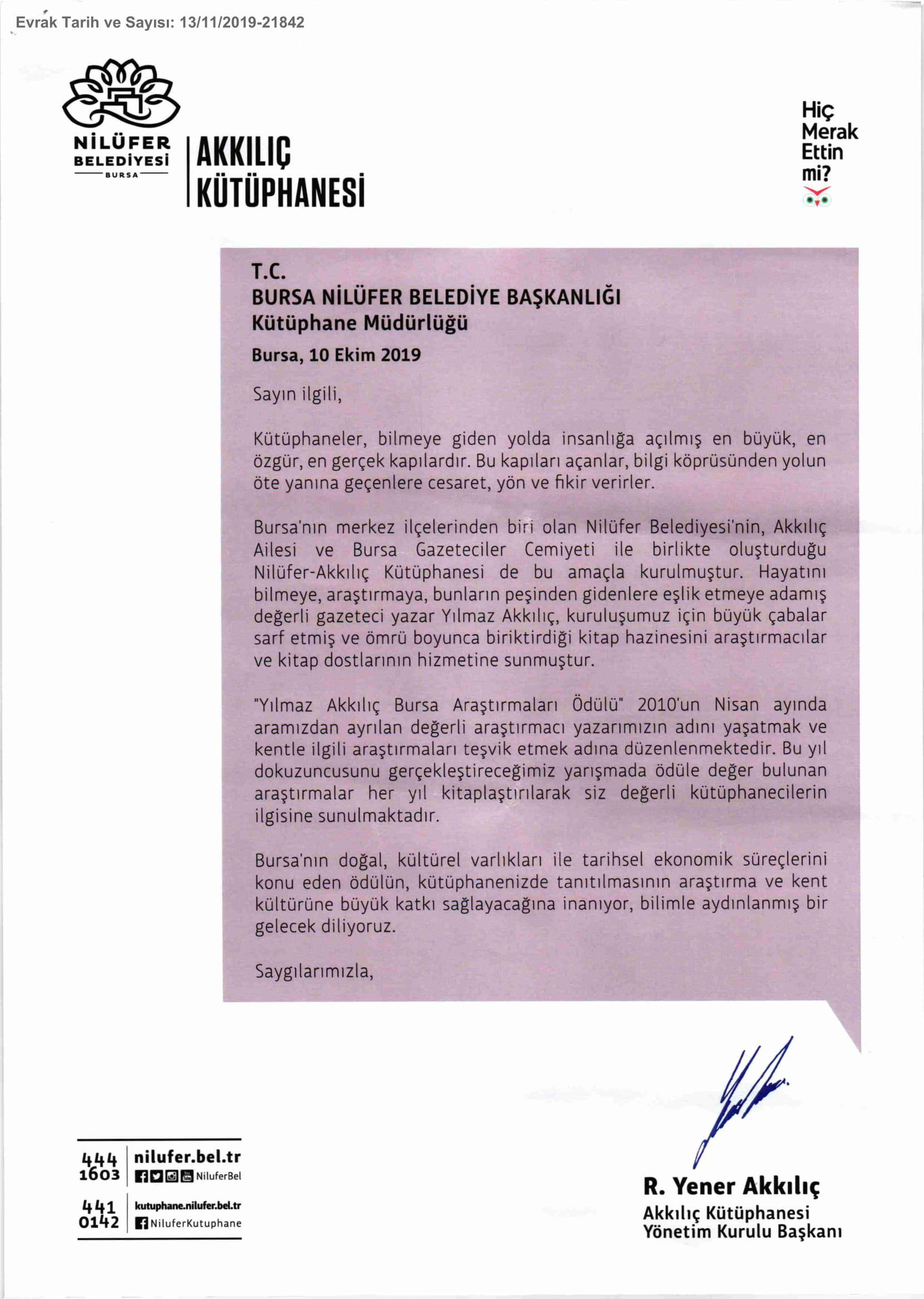 Ana Sayfa / Duyurular / Yılmaz Akkılıç Bursa Araştırmaları Ödülü