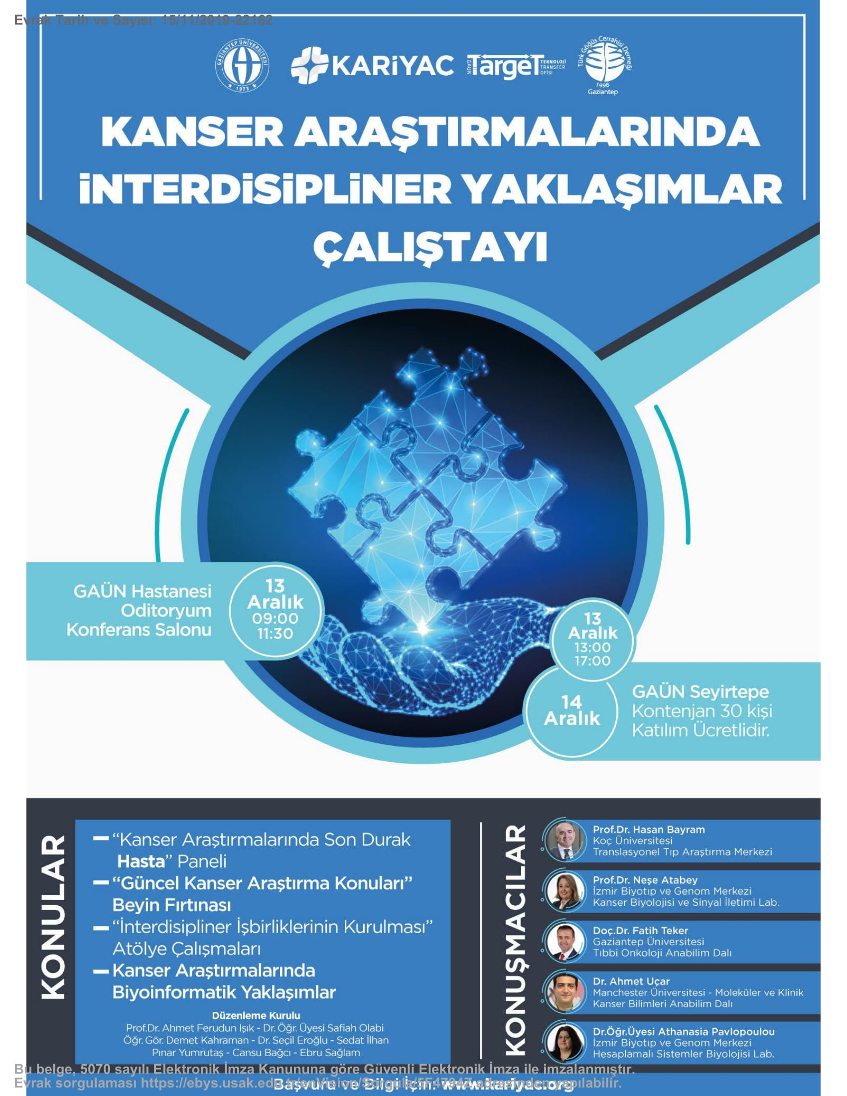 Ana Sayfa / Duyurular / Kanser Araştırmalarında İnterdisipliner Yaklaşımlar Çalıştayı