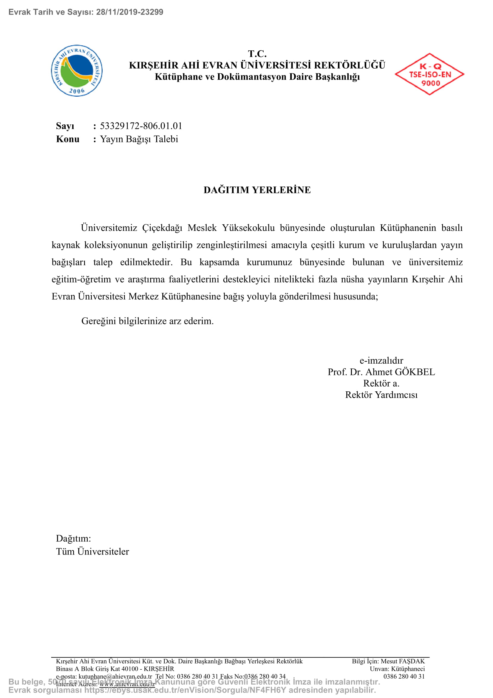Ana Sayfa / Duyurular / Yayın Bağışı Talebi