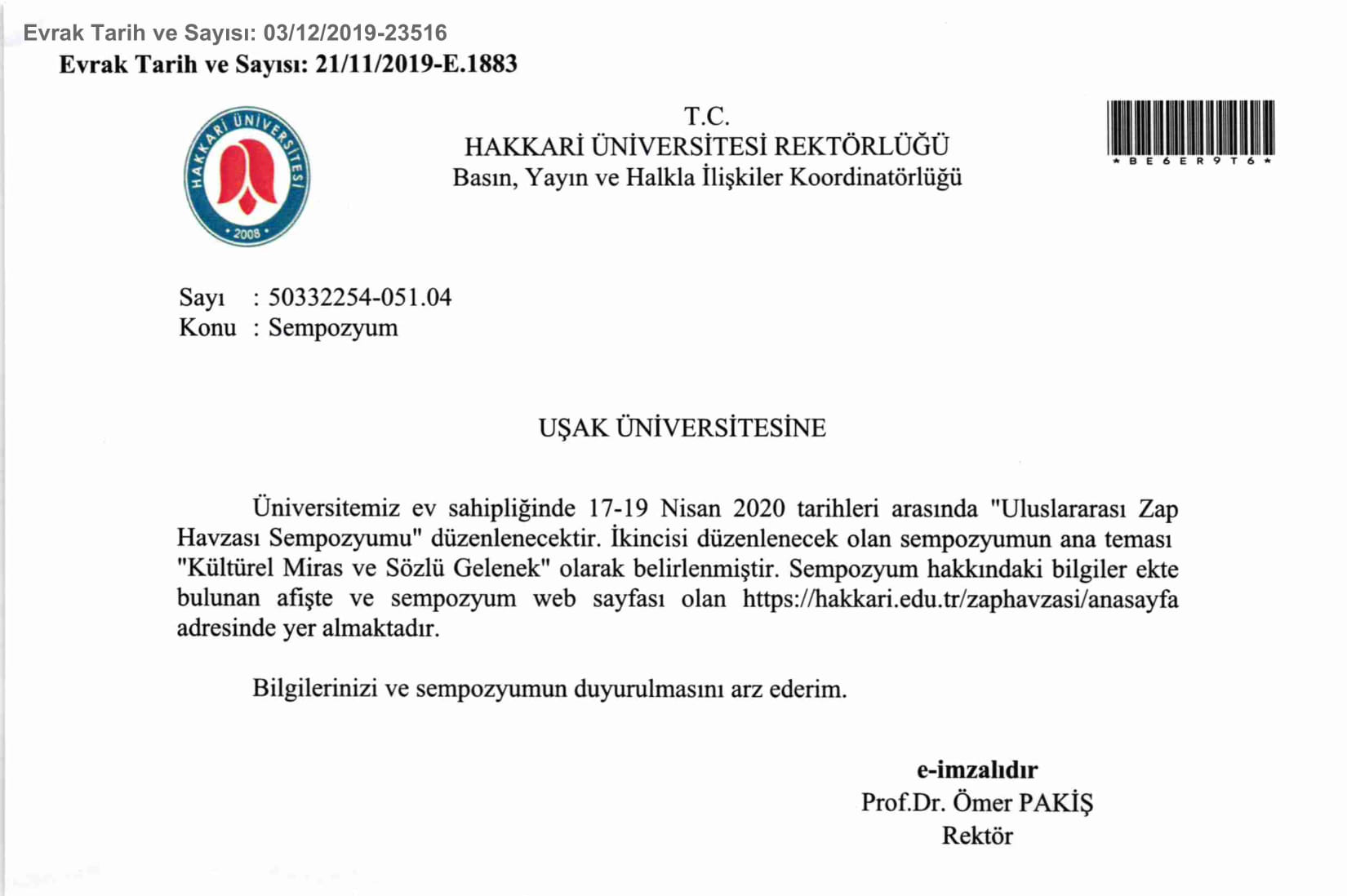 Ana Sayfa / Duyurular / Uluslararası Zap Havzası Sempozyumu
