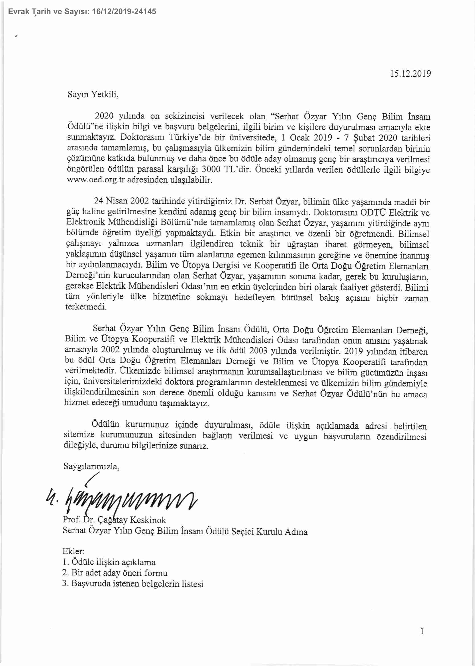 Ana Sayfa / Duyurular / Serhat Özyar Yılın Genç Bilim İnsanı Ödülü