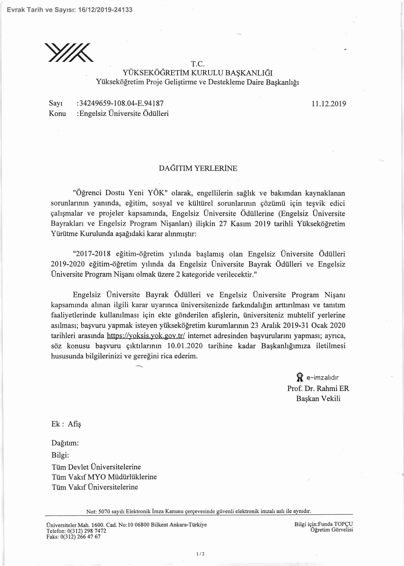 Ana Sayfa / Duyurular / Engelsiz Üniversite Ödülleri