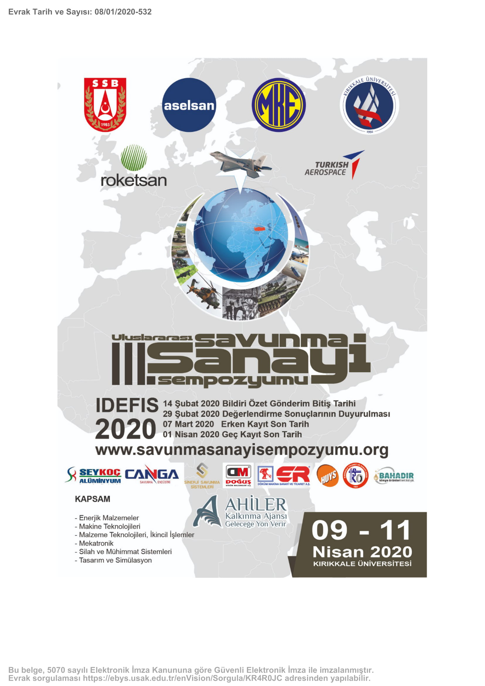 III. Uluslararası Savunma Sanayi Sempozyumu- IDEFIS 2020