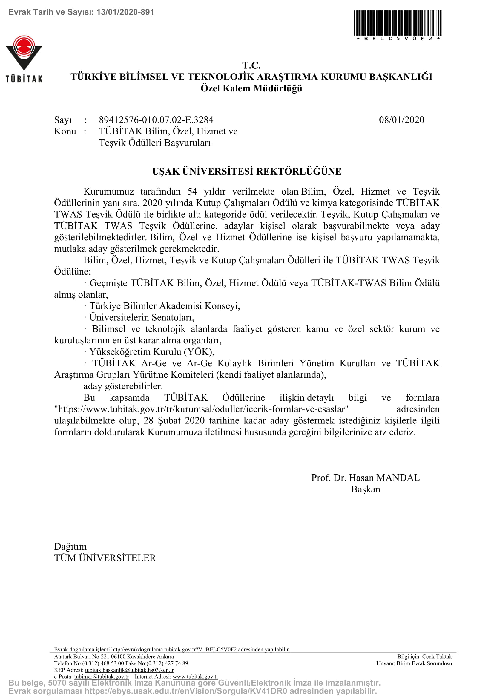TÜBİTAK Bilim, Özel, Hizmet ve Teşvik Ödülleri Başvuruları