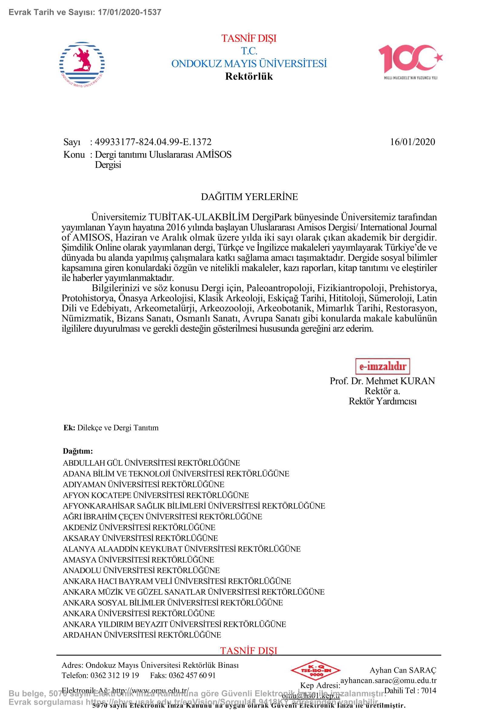 Ek: Dilekçe ve Dergi Tanıtım için tıklayınız.