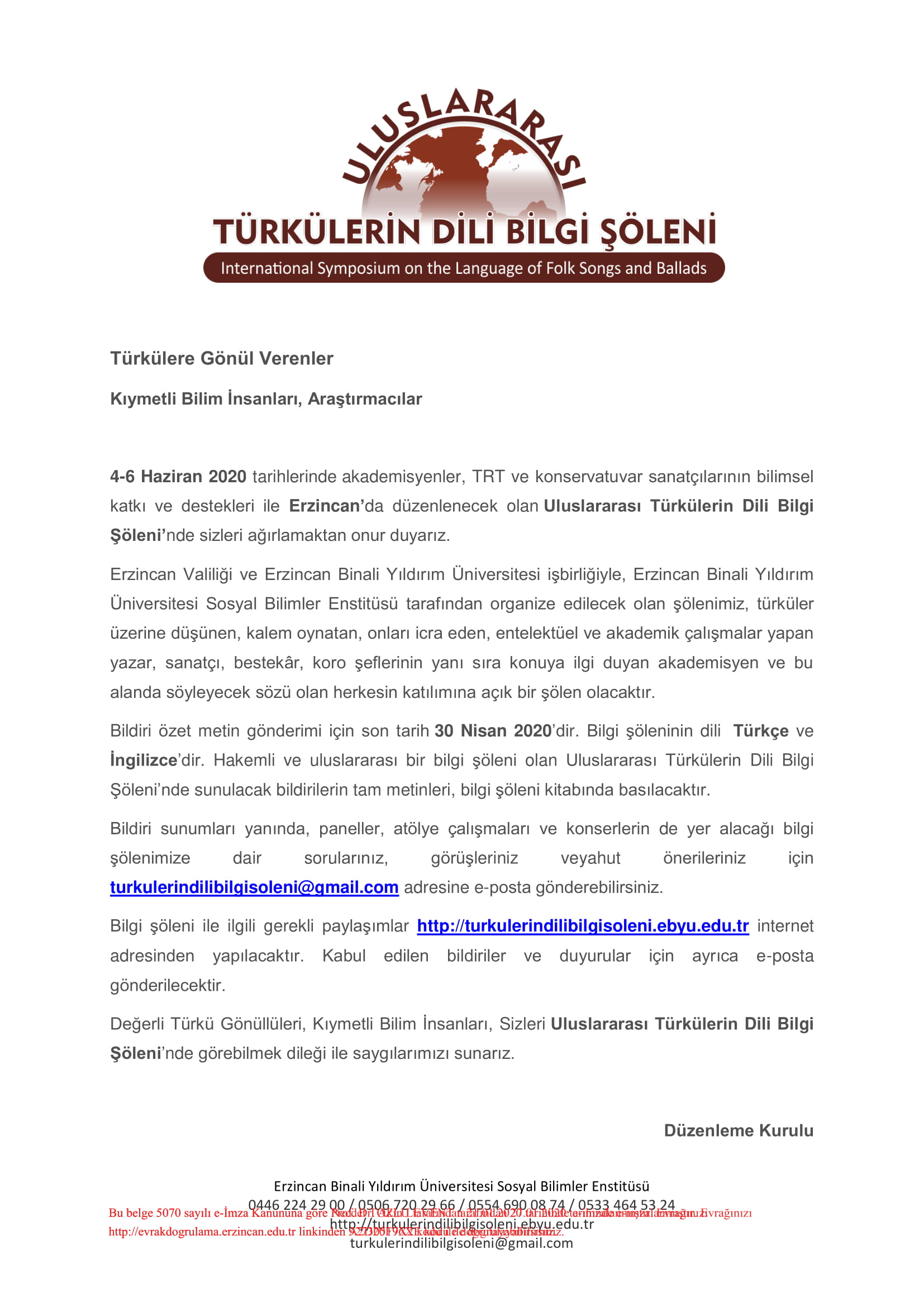 Ana Sayfa / Duyurular / Uluslararası Türkülerin Dili Bilgi Şöleni