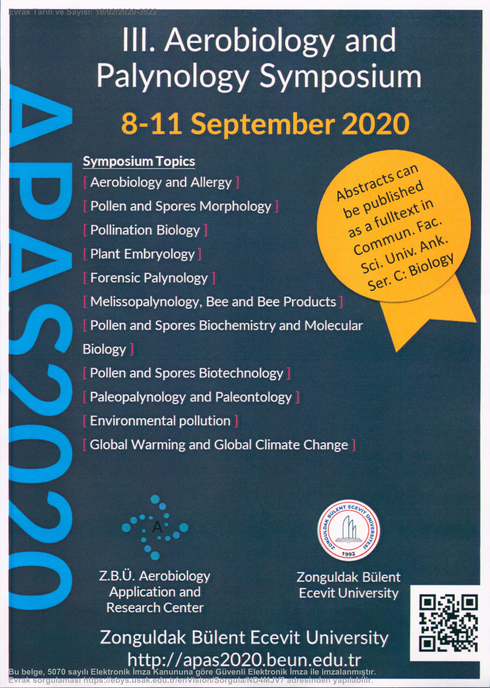 Ana Sayfa / Duyurular / II. Aerobiyoloji ve Palinoloji Sempozyumu (APAS2018)