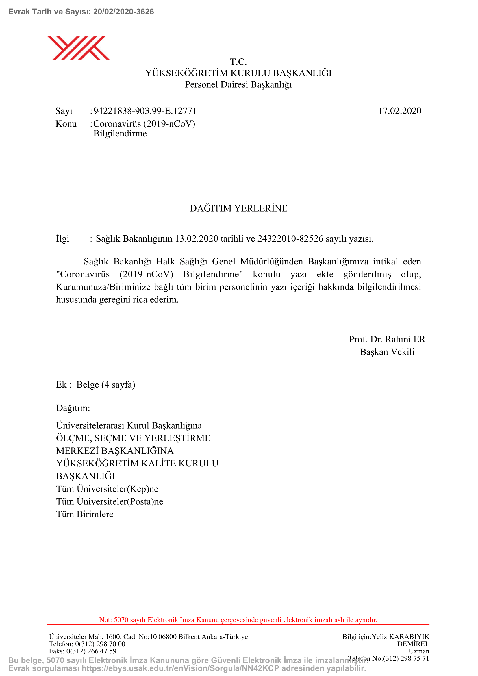 Coronavirüs (2019-nCoV) Bilgilendirme