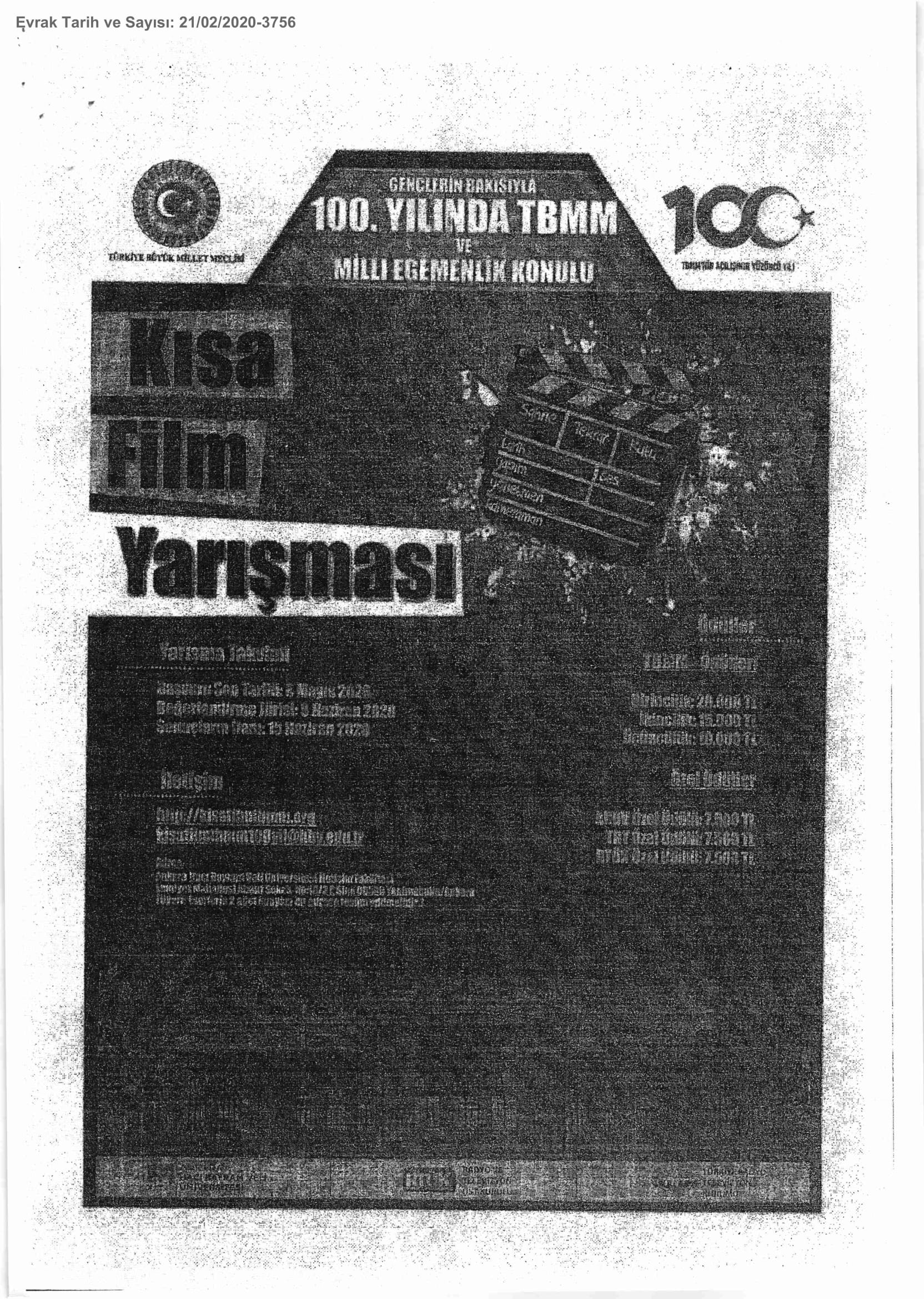 Gençlerin Bakışıyla 100. Yılında TBMM ve Milli Egemenlik Kısa Film Yarışması
