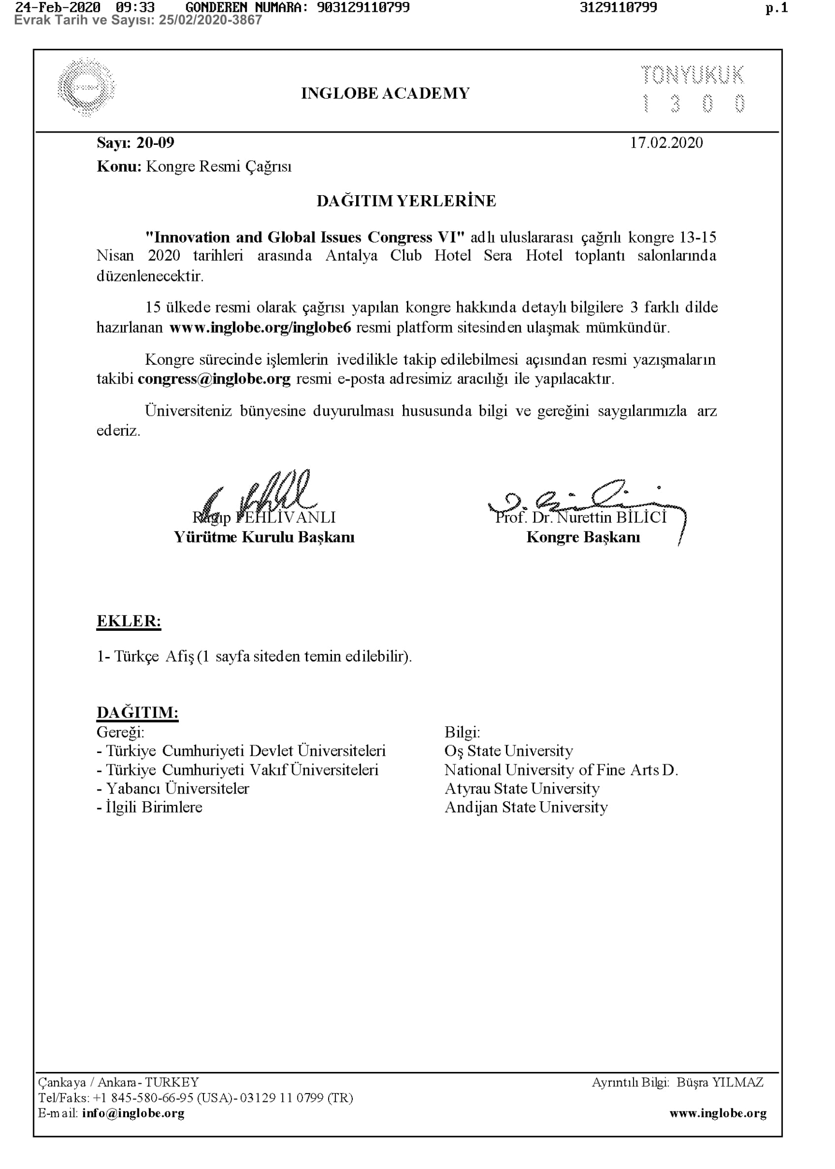 Ana Sayfa / Duyurular / Kongre Resmi Çağrısı
