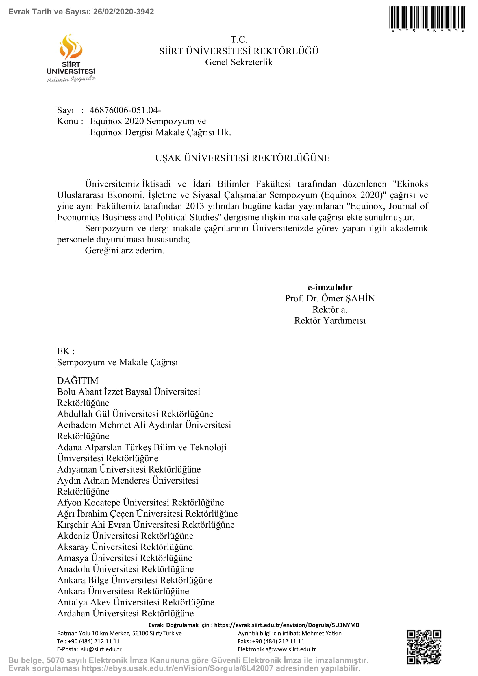 Equinox 2020 Sempozyum ve Equinox Dergisi Makale Çağrısı Hk.