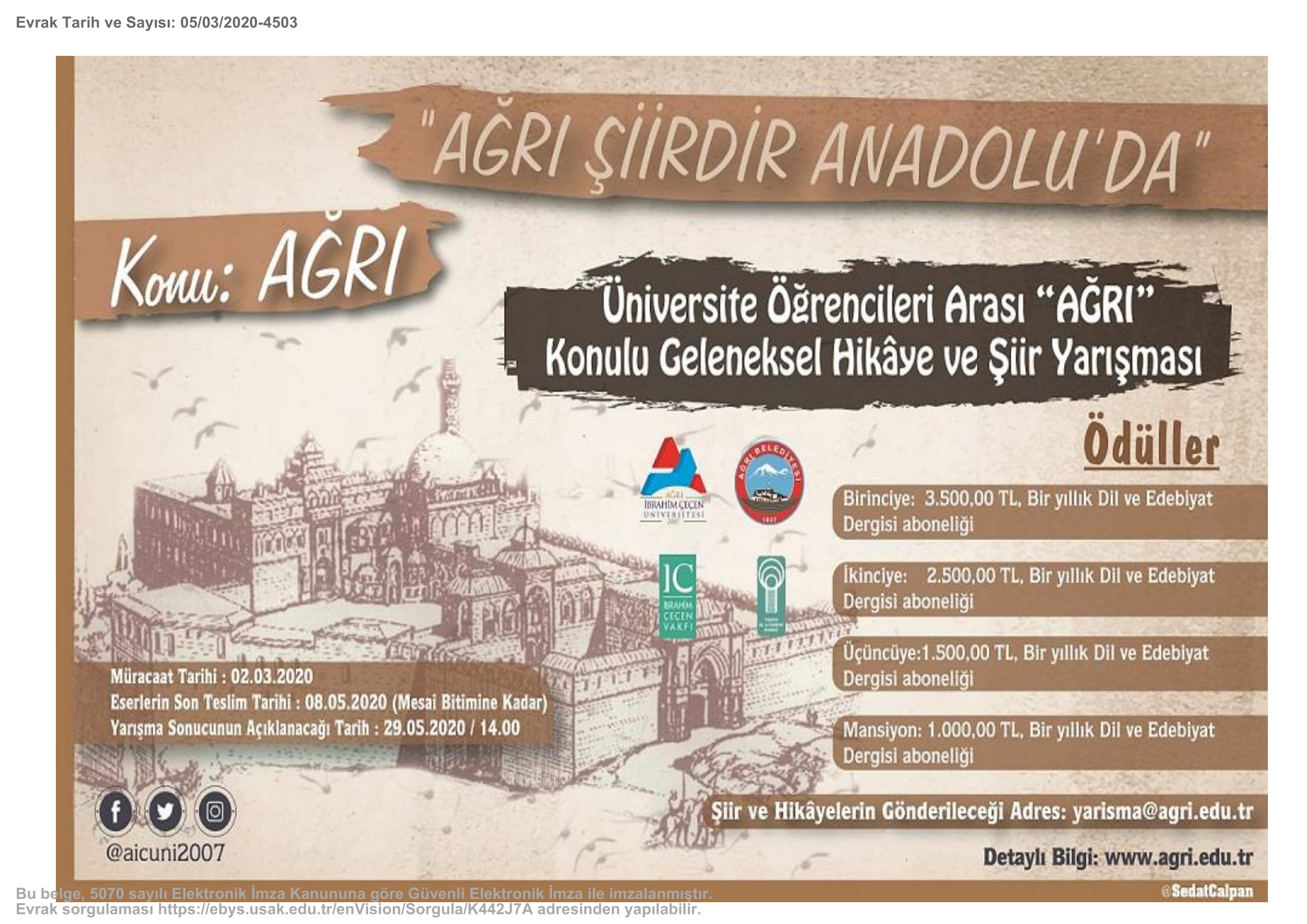 Ana Sayfa / Duyurular / Ağrı Konulu Geleneksel Hikaye ve Şiir Yarışması