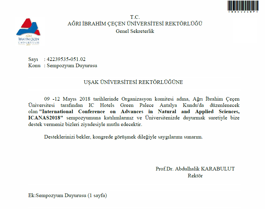 Ana Sayfa / Duyurular / "International Conference on Advances in Natural and Applied Sciences, ICANAS2018" Sempozyumu
