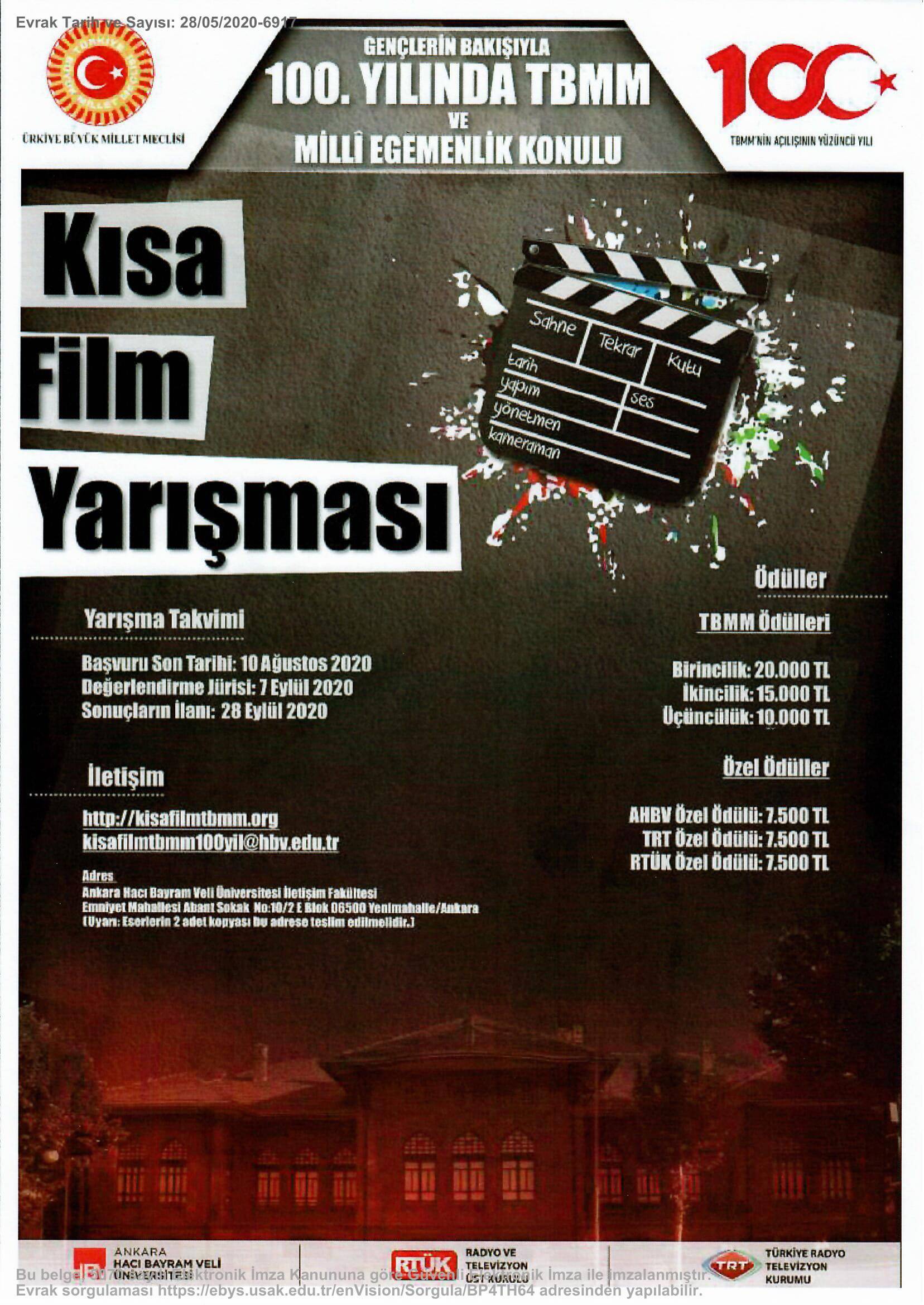 "Gençlerin Bakışıyla 100. Yılında TBMM ve Millî Egemenlik" Konulu Kısa Film Yarışması