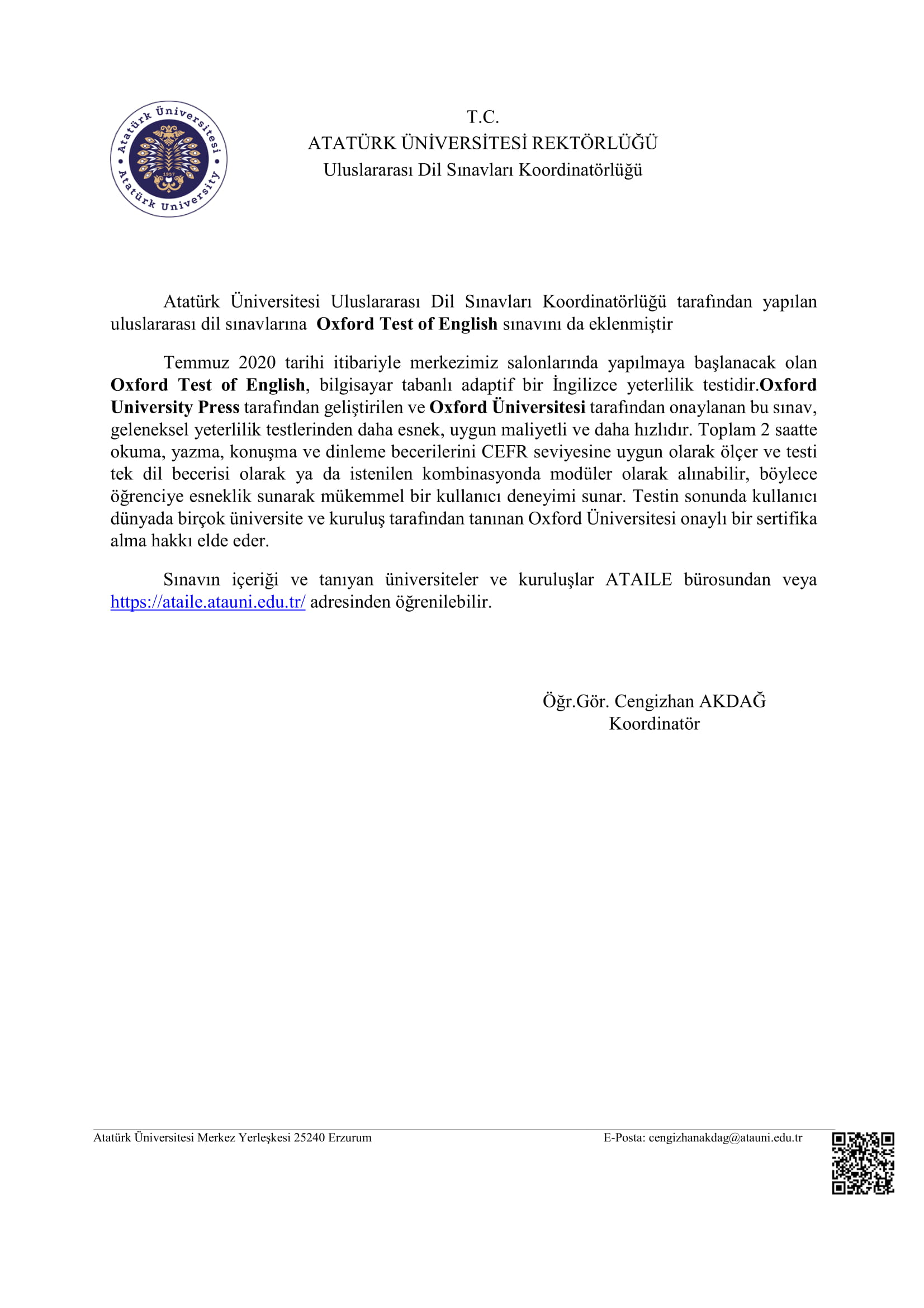 Ana Sayfa / Duyurular / Oxford Test Of English Sınavı Hk.